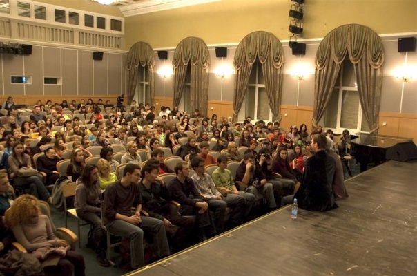 | In 1998 the Festival acquired an annual status, its geography expanded enormously andthe student jury appeared. In 2006 the Theatrical International Competition was introduced,and every year over 80 students from all over the world come to show their stage productions. |  | ||