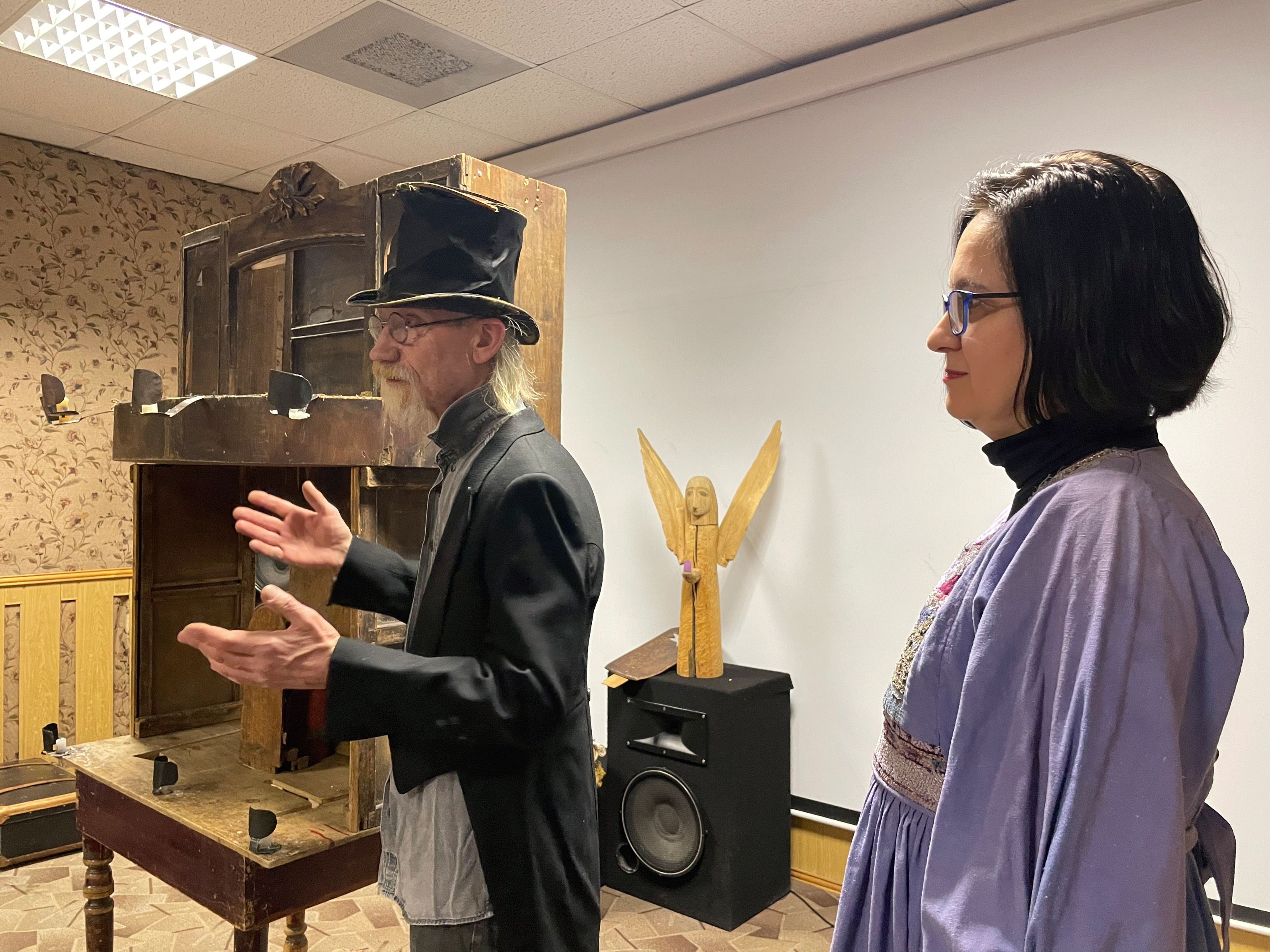 12 января, в Рождественскую неделю, для студентов и преподавателей колледжа состоялось представление кукольного спектакля «Вертеп». Его поставили и сыграли два очень талантливых человека – театральный художник С. В. Тараканов и преподаватель анимации колледжа Р. И. Гиматдинова. В основе сюжета спектакля лежит всем известная библейская история, повествующая о рождении Иисуса, о борьбе добра и зла. Мастерски изготовленный «вертеп» символизировал два мира: верхняя его часть - мир света с Богородицей, держащей на руках младенца, нижняя - мир тьмы с царством царя Ирода. Необыкновенные куклы в исторических костюмах, песнопения, диалоги героев, мерцающий свет, неизбежная гибель тёмных сил – всё вселяло веру в торжество Добра, Правды, Любви и Красоты, в которых заключается главный смысл человеческой жизни.Картинки: