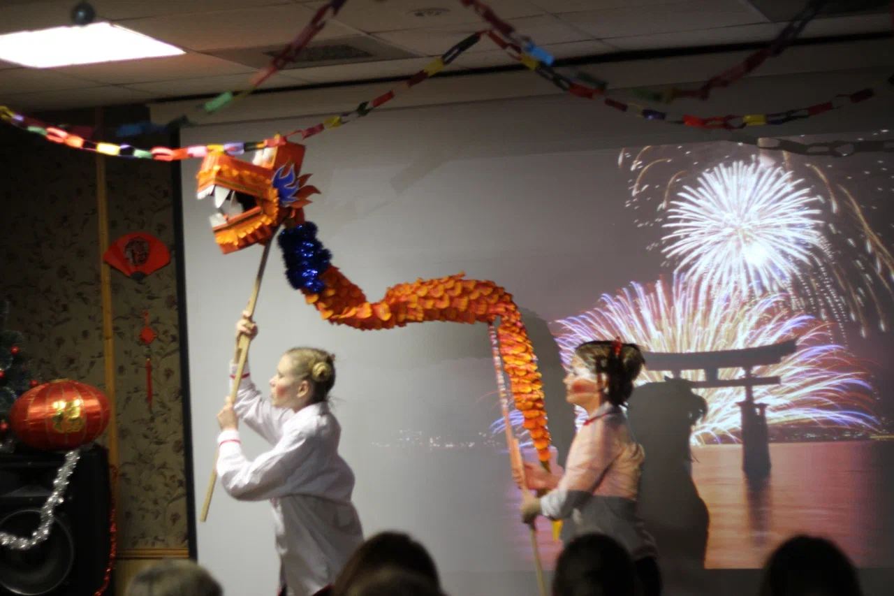 Новый год – один из любимых праздников и детей, и взрослых. 27 января студенты и преподаватели колледжа с радостью отпраздновали его второй раз, отметив наступление Нового года по китайскому календарю. Начался праздник в соответствии с традициями Китая: на сцене появился огромный Дракон и прекрасные танцовщицы в кимоно, исполнившие китайские танцы. После этого началось весёлое музыкальное представление с обязательной сказочной новогодней интригой – пропажей Снегурочки. Добрые и не очень добрые герои волшебных сказок – Василиса Премудрая, Снежная Королева, Красная Шапочка, Кикиморы и другие - старались показать свои таланты, чтобы получить роль Снегурочки на Новогоднем празднике. Они пели, танцевали, шутили, но никто из них так и не выиграл в конкурсе. В финале настоящая Снегурочка нашлась, и Новый год наступил. Спектакль, поставленный преподавателем английского языка Коноваловой А. Е., доставил всем зрителям огромное удовольствие и вернул в детство - прекрасное и неповторимое время ожидания новогодних чудес и сказок!Картинки: