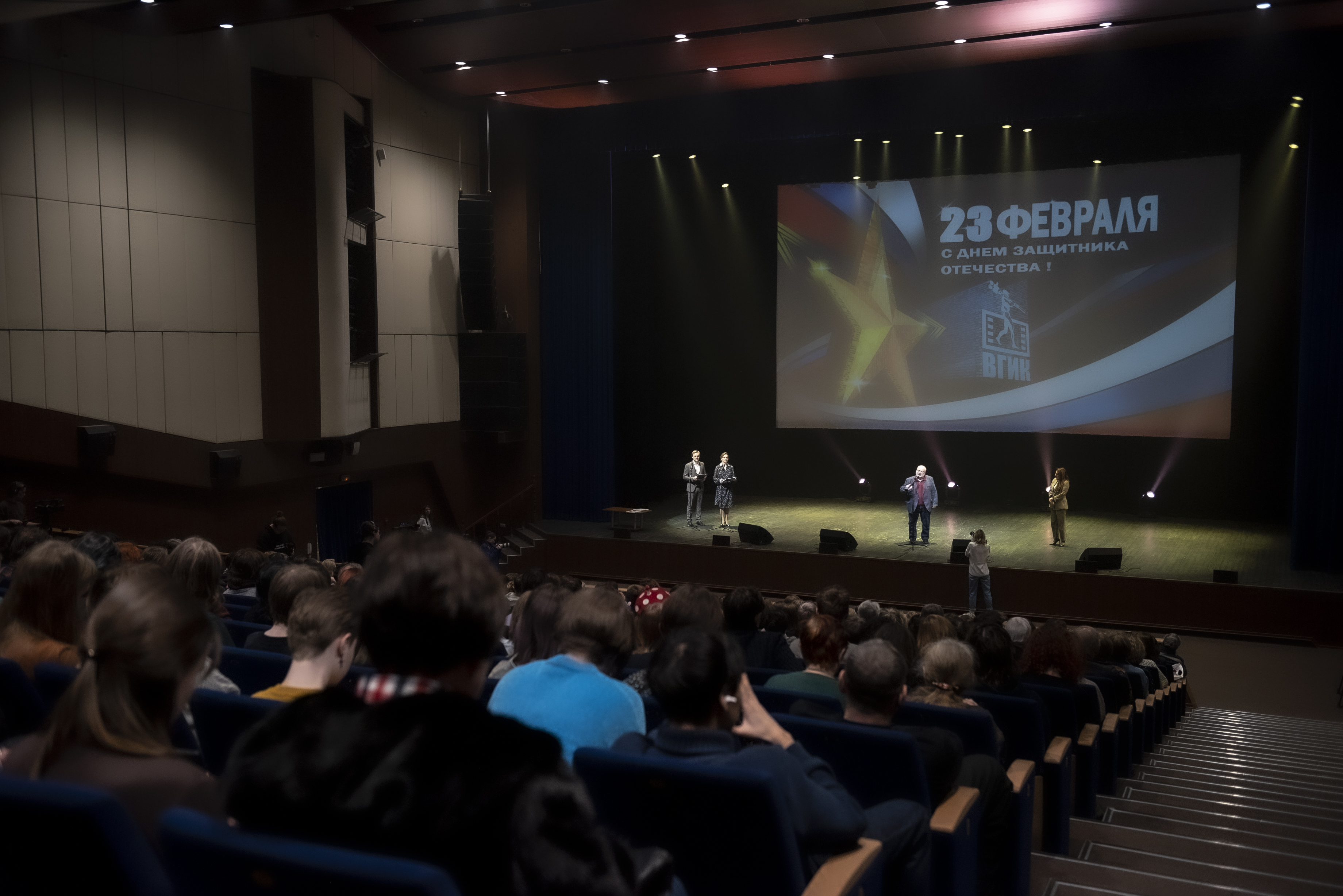 22 февраля студенты колледжа были приглашены в большой киноконцертный зал ВГИКа на торжественный концерт, посвящённый празднованию Дня защитника Отечества. Ректор университета Владимир Сергеевич Малышев, обращаясь к присутствующим, отметил, что в наши дни понятие «защитник Отечества» приобрело особый смысл: защитники Отечества - это участники специальной военной операции, которые героически сражаются за Россию, за мир на многострадальной земле Луганска, Донецка, Херсона, Запорожья.
