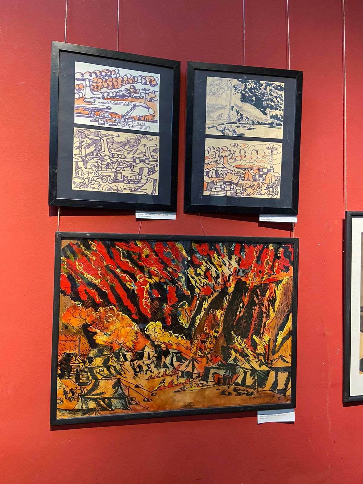 В экспозиции было представлено около ста картин художника, по которым можно судить о многогранности и своеобразии его таланта. Большинство работ – это эскизы к фильмам, в которых Анатолий Владимирович работал как художник-постановщик. Созданные в различной технике, эскизы поражают глубиной образов, продуманностью композиции, отточенностью каждой детали. Среди них эскизы к «Сказке о царе Салтане» (режиссёр А. Л.Птушко), фильмам «Женитьба Бальзаминова» (режиссёр К. Н. Воинов), «Экипаж» (режиссёр А. Н. Митта). Сегодня эти ленты по праву входят в золотой фонд киностудии «Мосфильм».