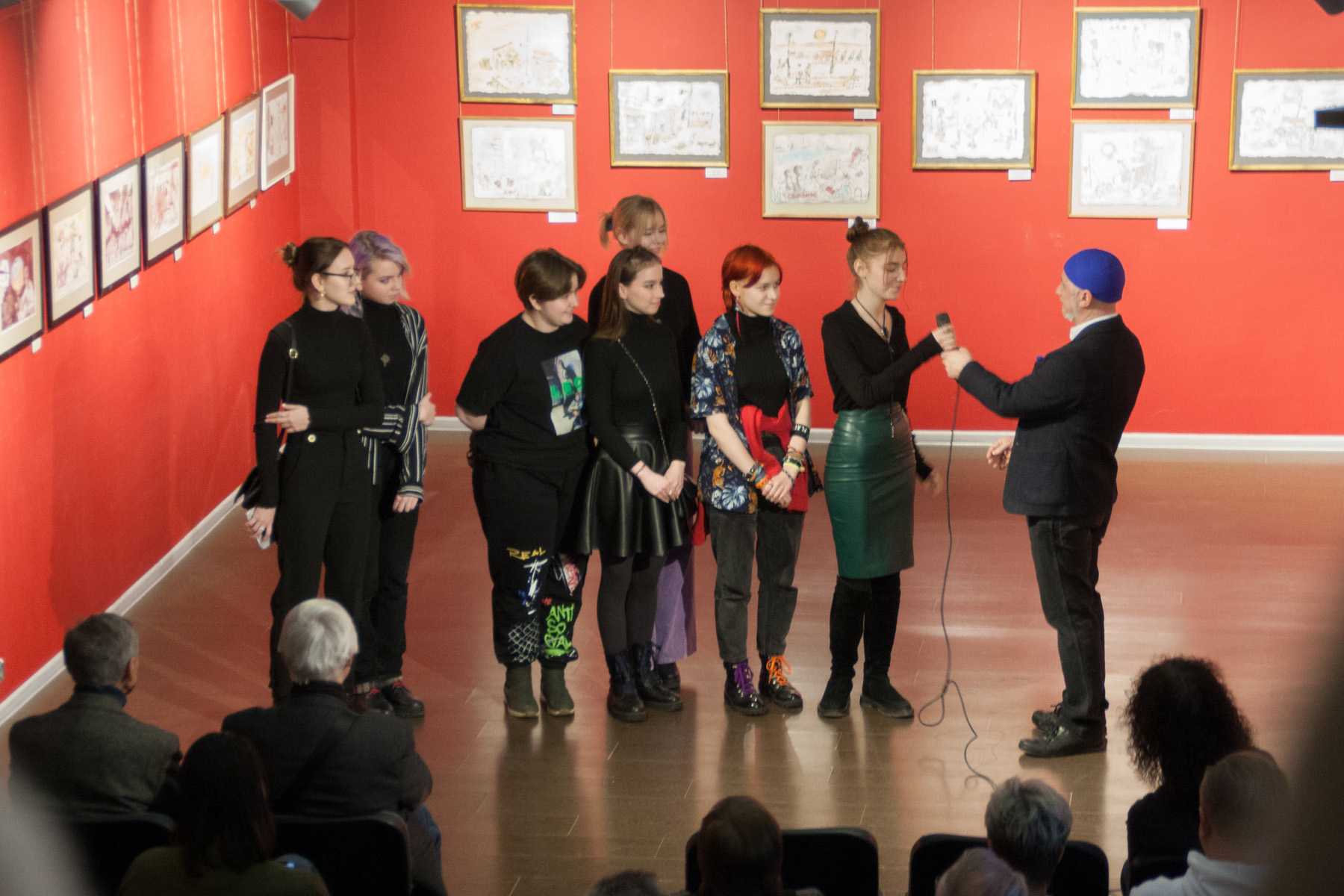 3 марта студенты колледжа побывали на открытии выставки «Мастер и художники» преподавателя колледжа, режиссёра, художника-постановщика, руководителя мастерской ВГИК Леонида Геннадьевича Пожидаева. Примечательно, что выставка проходила в МЦХШ на Крымском валу – в школе, где когда-то учился будущий мастер, и была приурочена к его юбилею.