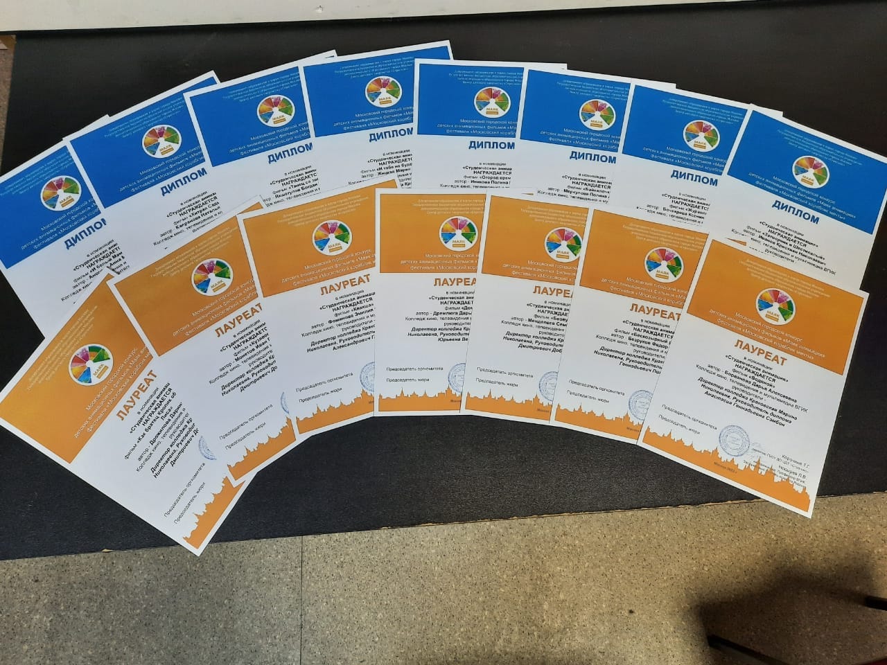 1 июня состоялось торжественная церемония награждения участников Городского конкурса детского анимационного кино «Маяк анимации», прошедшего в рамках ежегодного фестиваля «Московский кораблик мечты». Обладателем ГРАН-ПРИ - высшей награды конкурса в номинации «Студенческая анимация» стала студентка колледжа Борванова Дарья с фильмом «Водяной». Всего в этом году на конкурс было представлено 15 работ студентов колледжа, среди которых фильм «Водяной» стал победителем, авторы 7 фильмов получили дипломы лауреатов.
