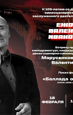 17 февраля 2026 г. в 15:30 в аудитории № 910 в рамках ВГИК Киноклуб к 125-летию народного артиста СССР Михаила Ильича Ромма, состоится встреча с заслуженным деятелем искусств РФ, выпускником ...