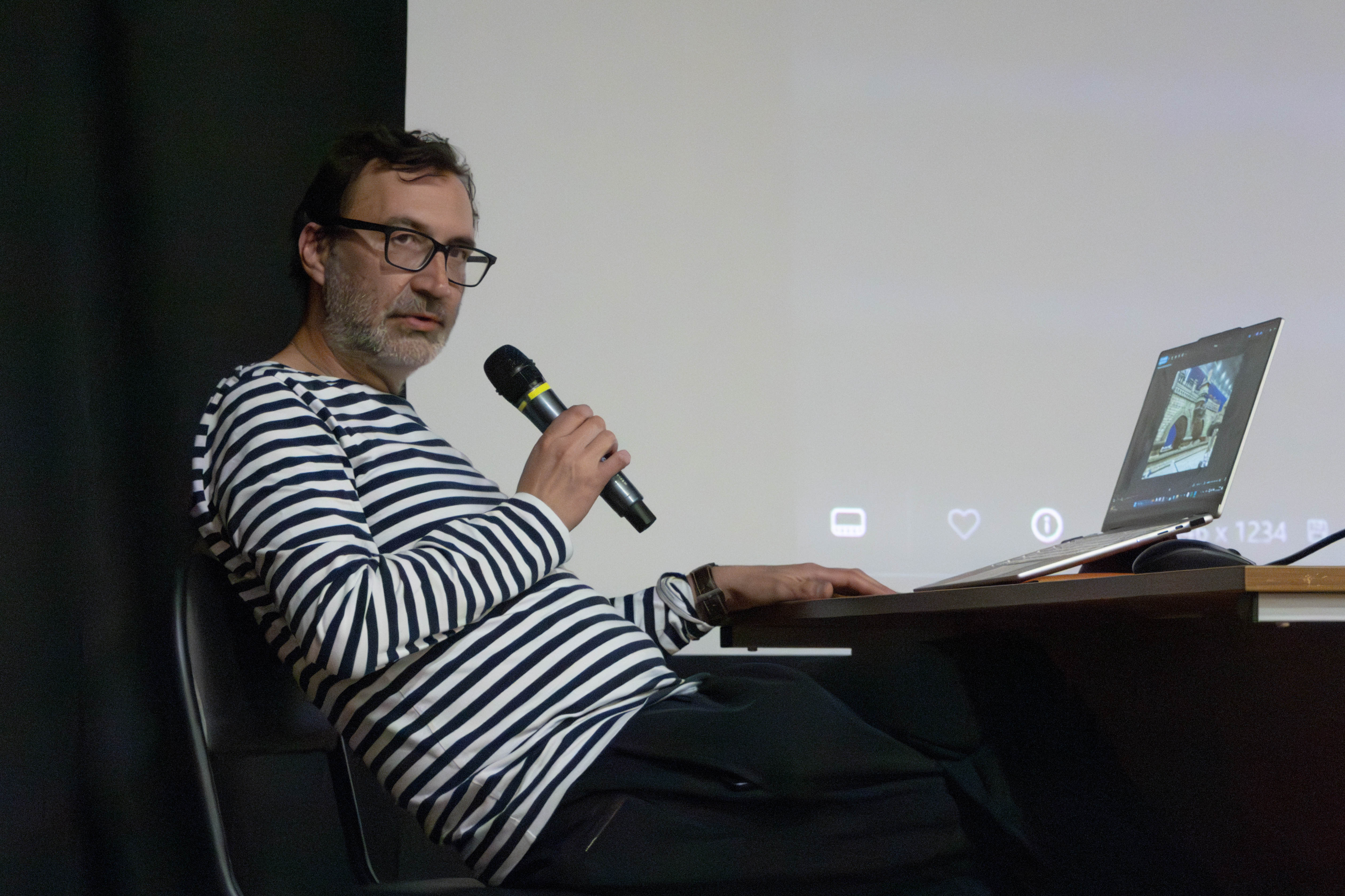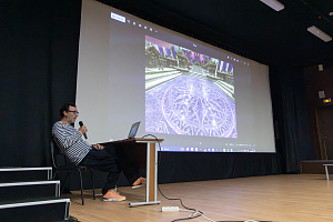 Далее декан факультета виртуальной реальности и искусственного интеллекта, руководитель мастерской А. С. Алибеков, представил презентацию о плюсах и минусах использования ИИ в работе художника-постановщика, о генеративных моделях, нейрозвуке и о новом направлении подготовки во ВГИКе.