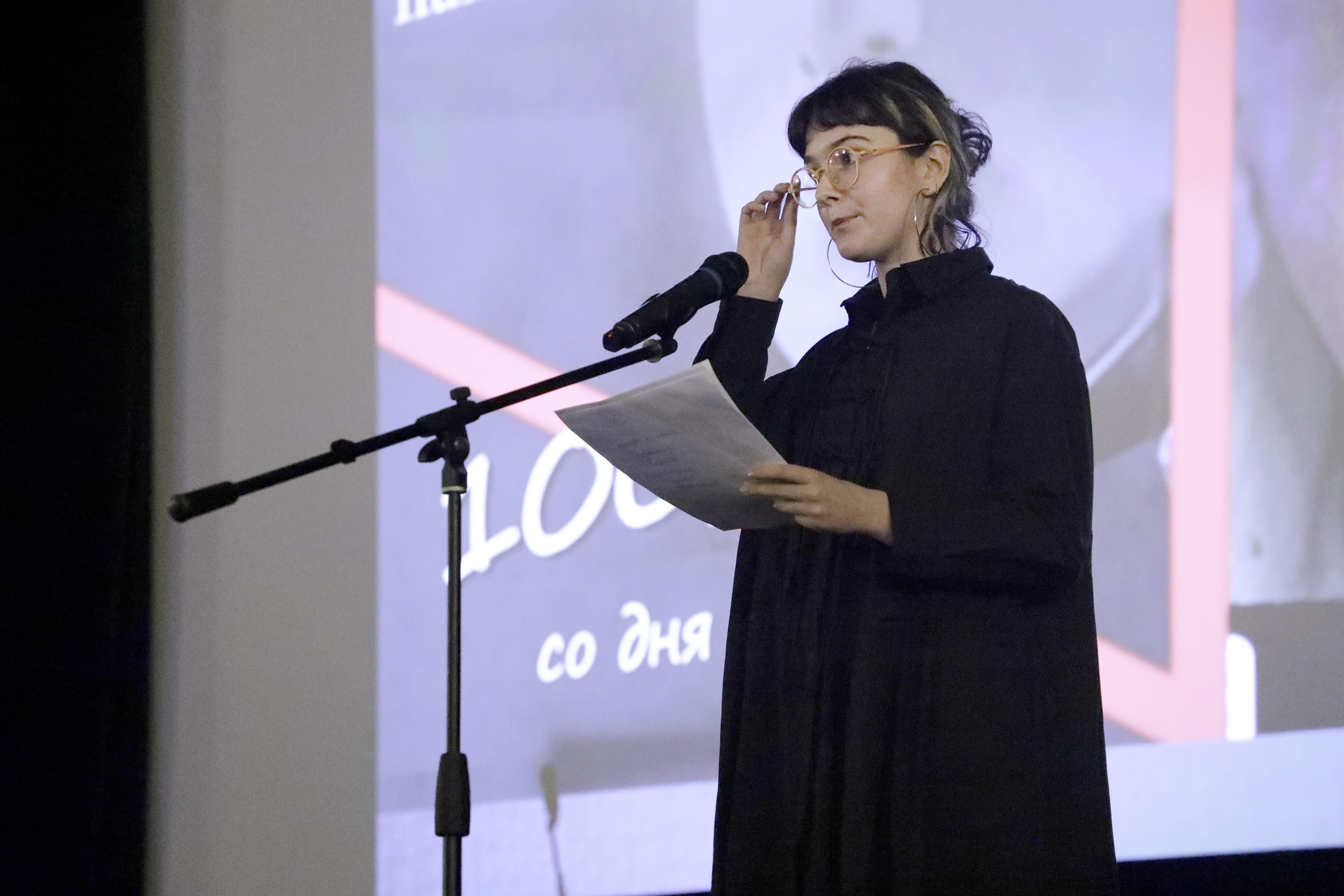 Первым пробным выходом на большую сцену было выступление перед зрителями в качестве киноведа студентки третьего курса сценарно-киноведческого факультета Екатерины Кученевой. Вечер завершил фильм П.Е. Тодоровского «Городской романс».