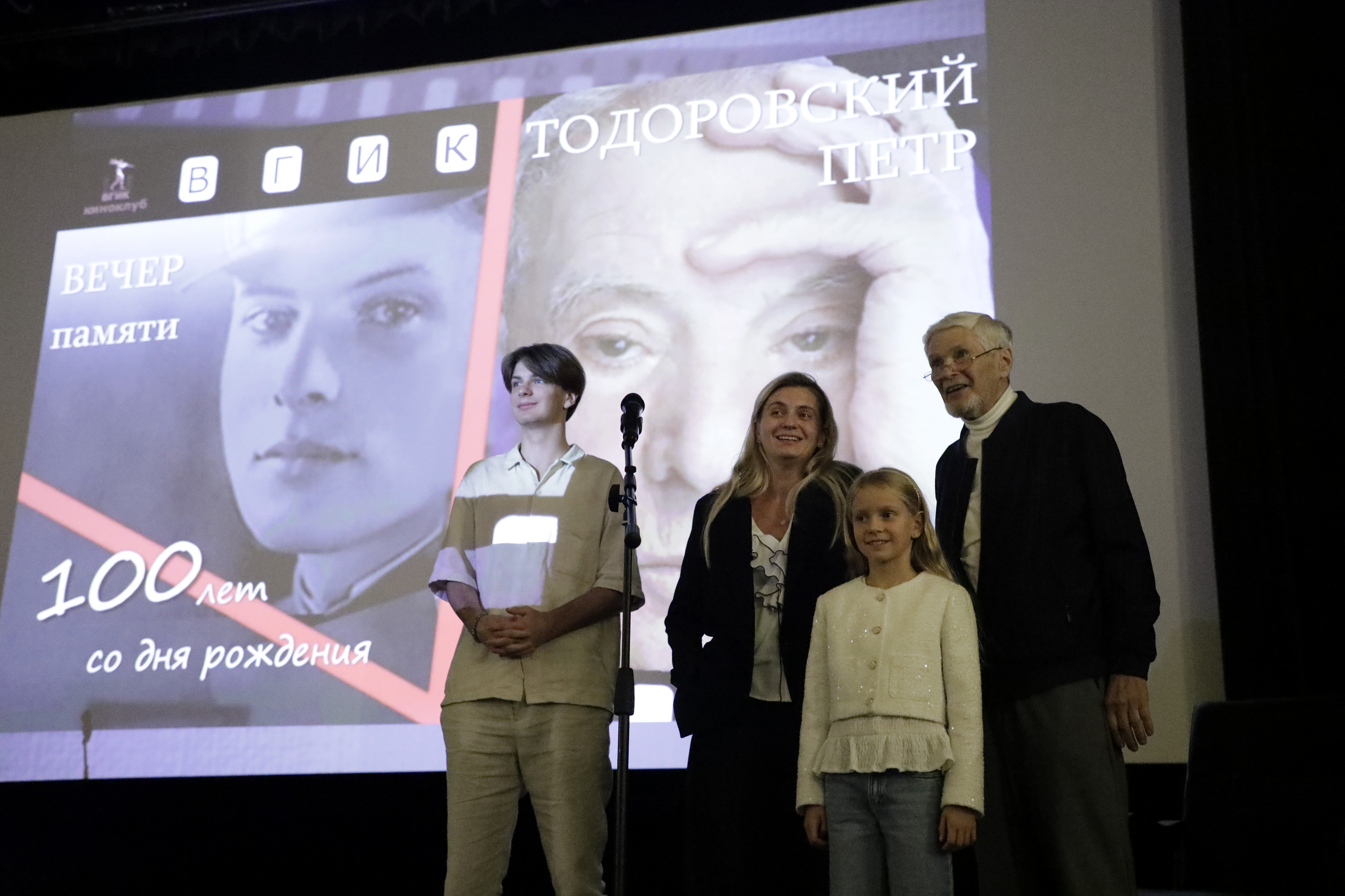 Зрители увидели эксклюзивные видеоматериалы о Тодоровском, а также фрагменты из его фильмов. На памятный вечер пришли члены семьи Тодоровских – правнуки.