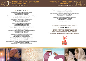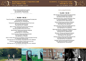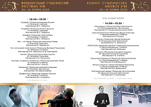 В рамках международного этапа пройдут мастер классы и творческие встречи с членами жюри. Основные мероприятия фестиваля будут проходить во Всероссийском государственном университете кинематографии им. С.А. Герасимова. Студенческие фильмы – программы ВГИК, также будут представлены на более чем 200 площадках в 40 регионах России.