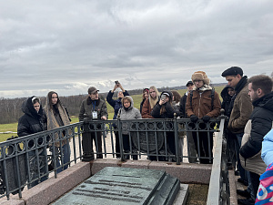 Экскурсия прошла в виде посещения главной экспозиции «Славься ввек, Бородино!», просмотра памятных мест сражений, а также похода к Монументу героям Бородинского сражения. Экскурсию по Музею-заповеднику провёл Илья Кириллов – выпускник и аспирант ВГИКа, рассказав не только об исторических событиях 1812 года, но и представив развёрнутое отражение их в истории отечественного кинематографа. Просторы, величие ратного поля оставили неизгладимые впечатления у студентов. Возможно, будущие деятели кино обязательно создадут проекты, вдохновившись Бородинским полем – мемориалом двух Отечественных войн.
