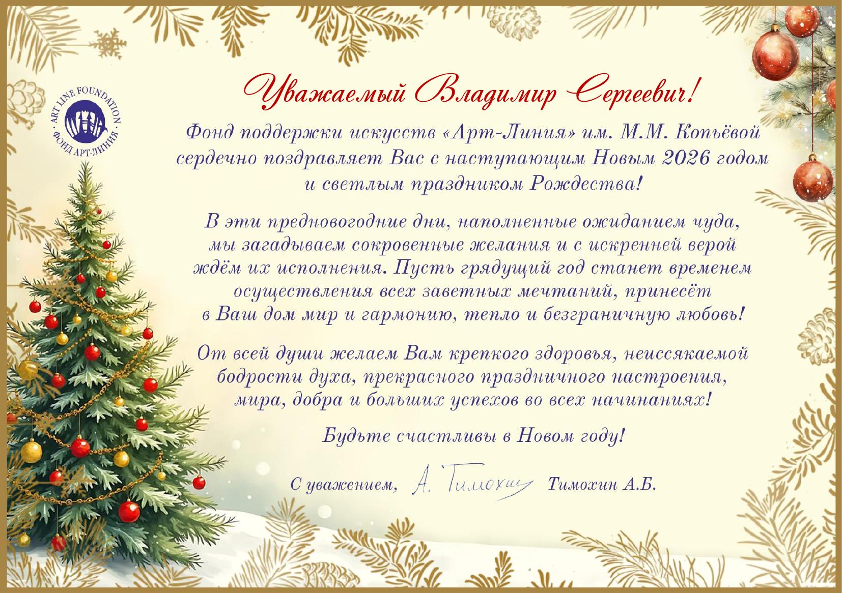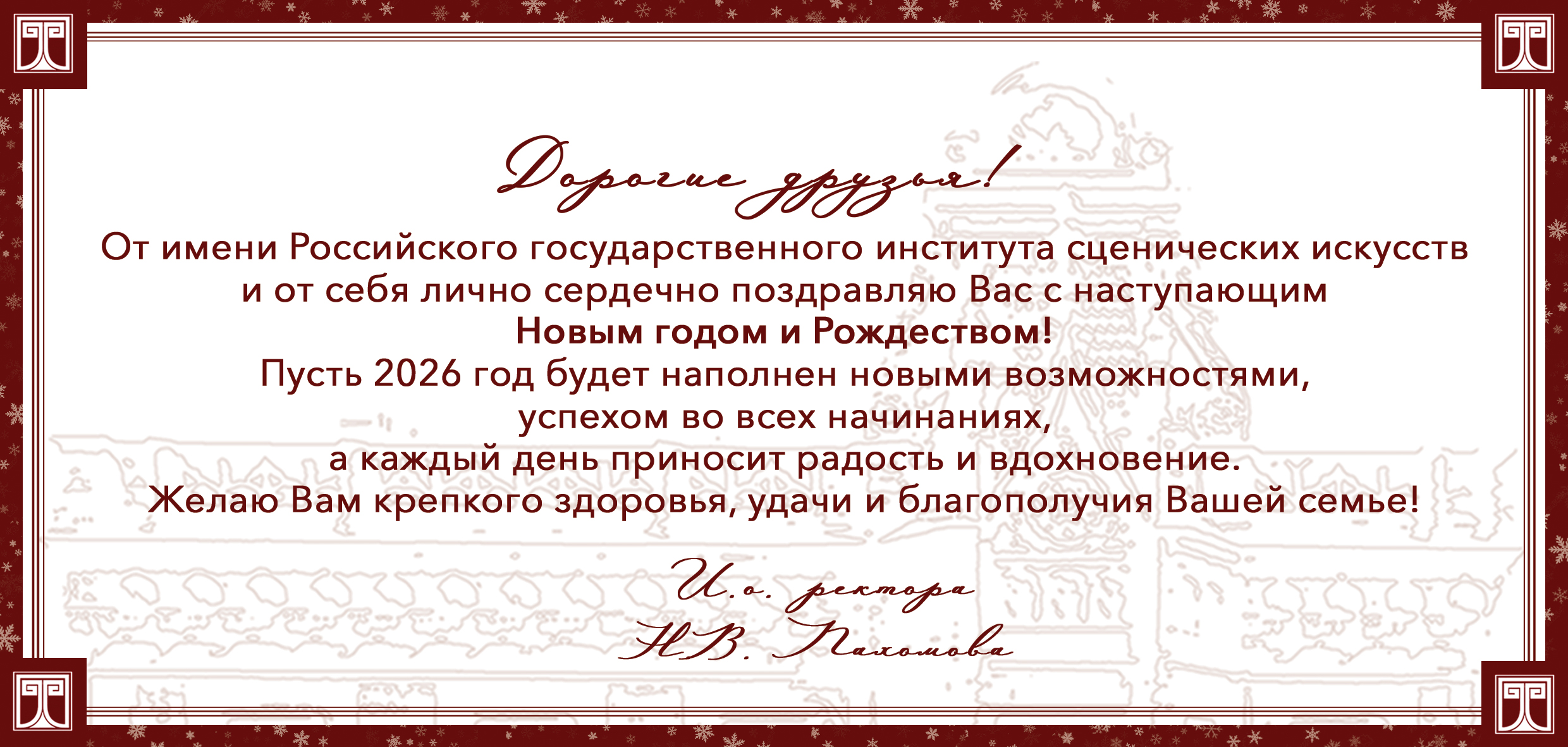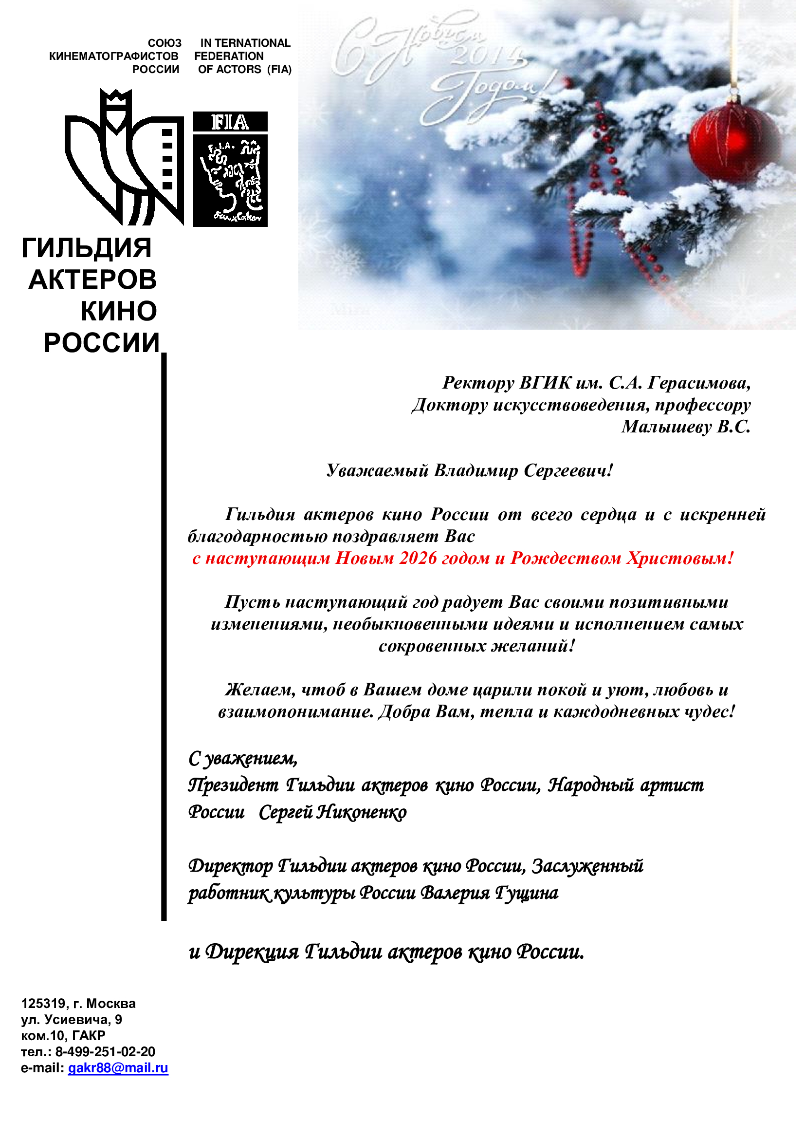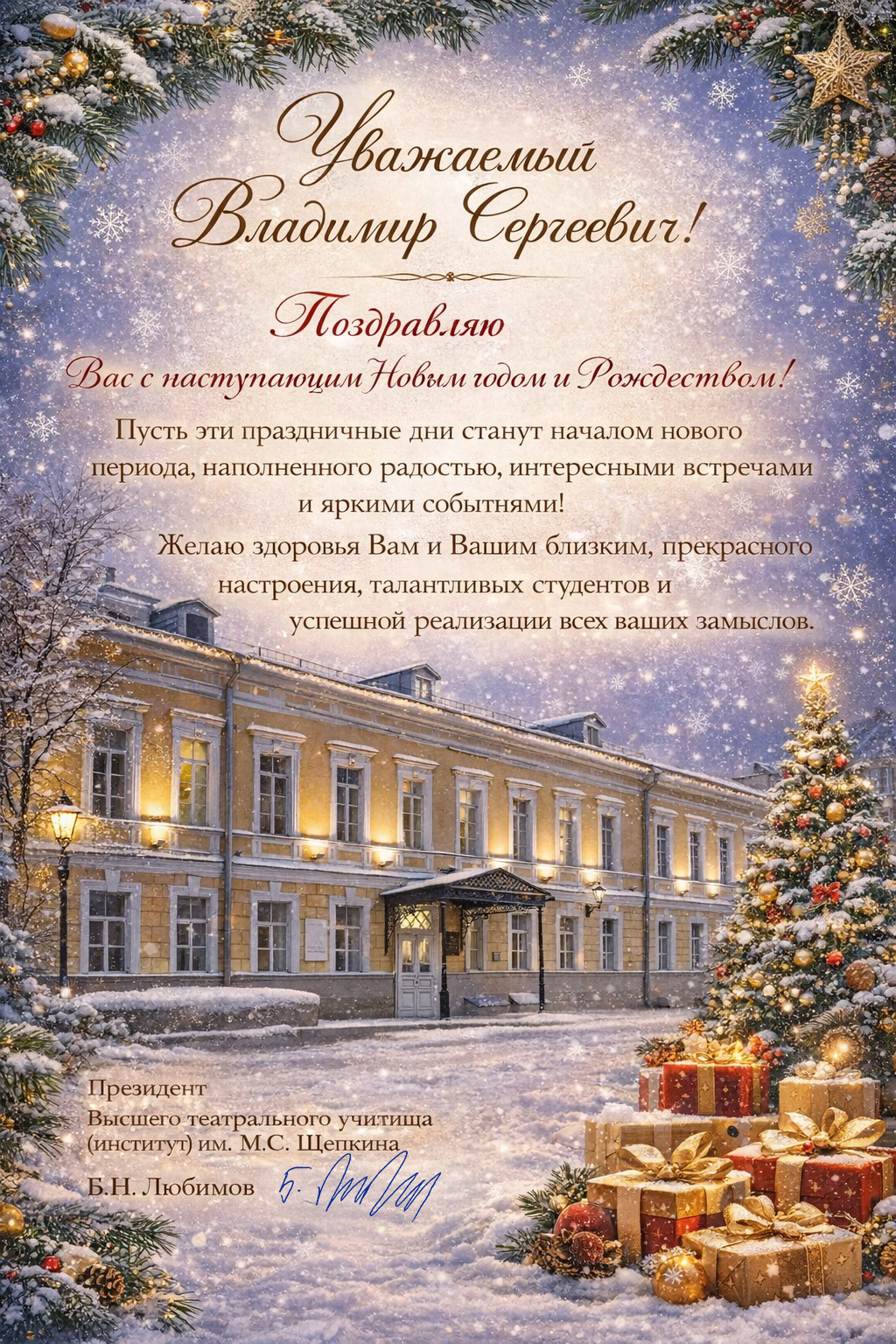В адрес ректора ВГИКа В.С. Малышева поступают поздравительные открытки с Новым 2026 годом