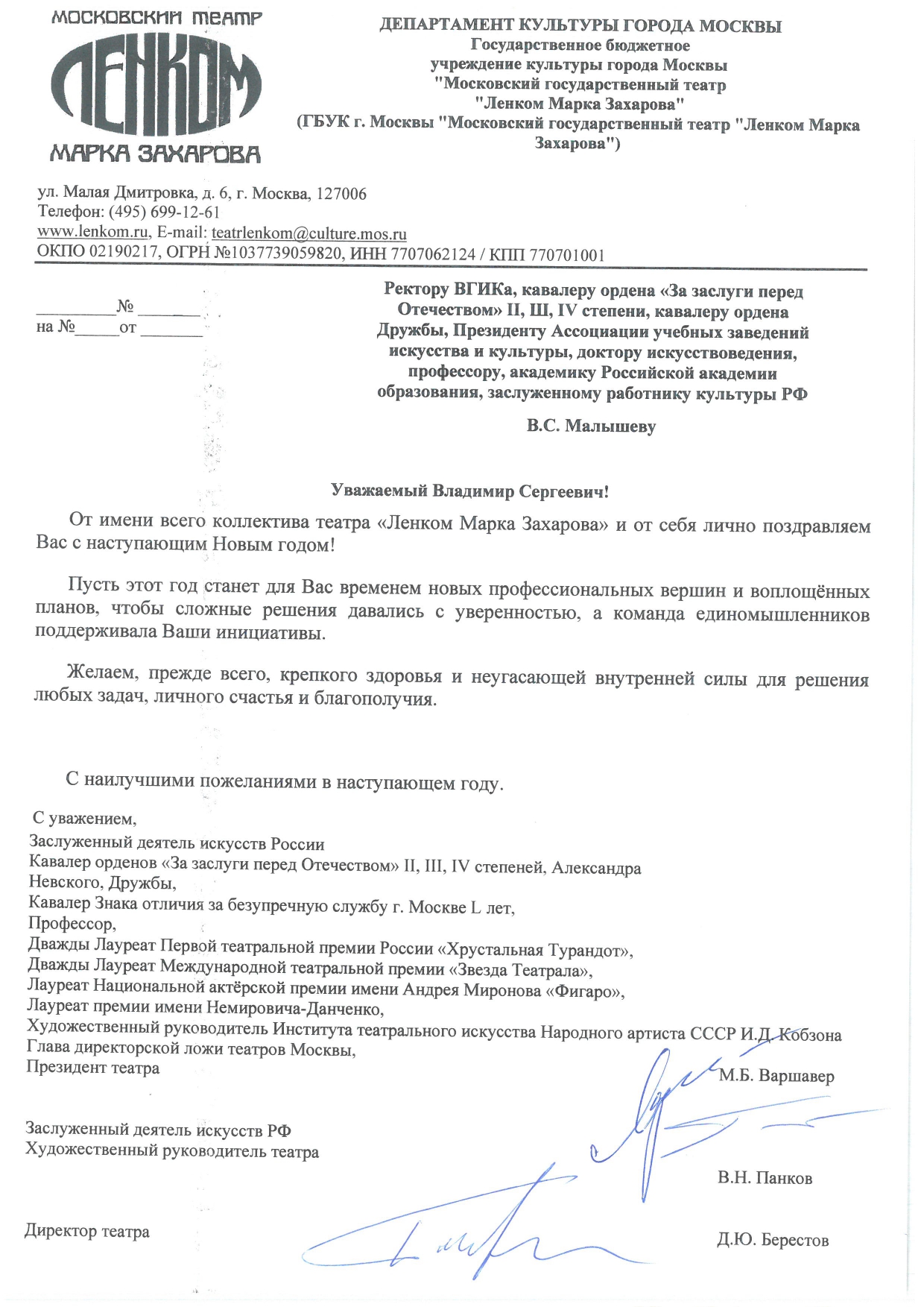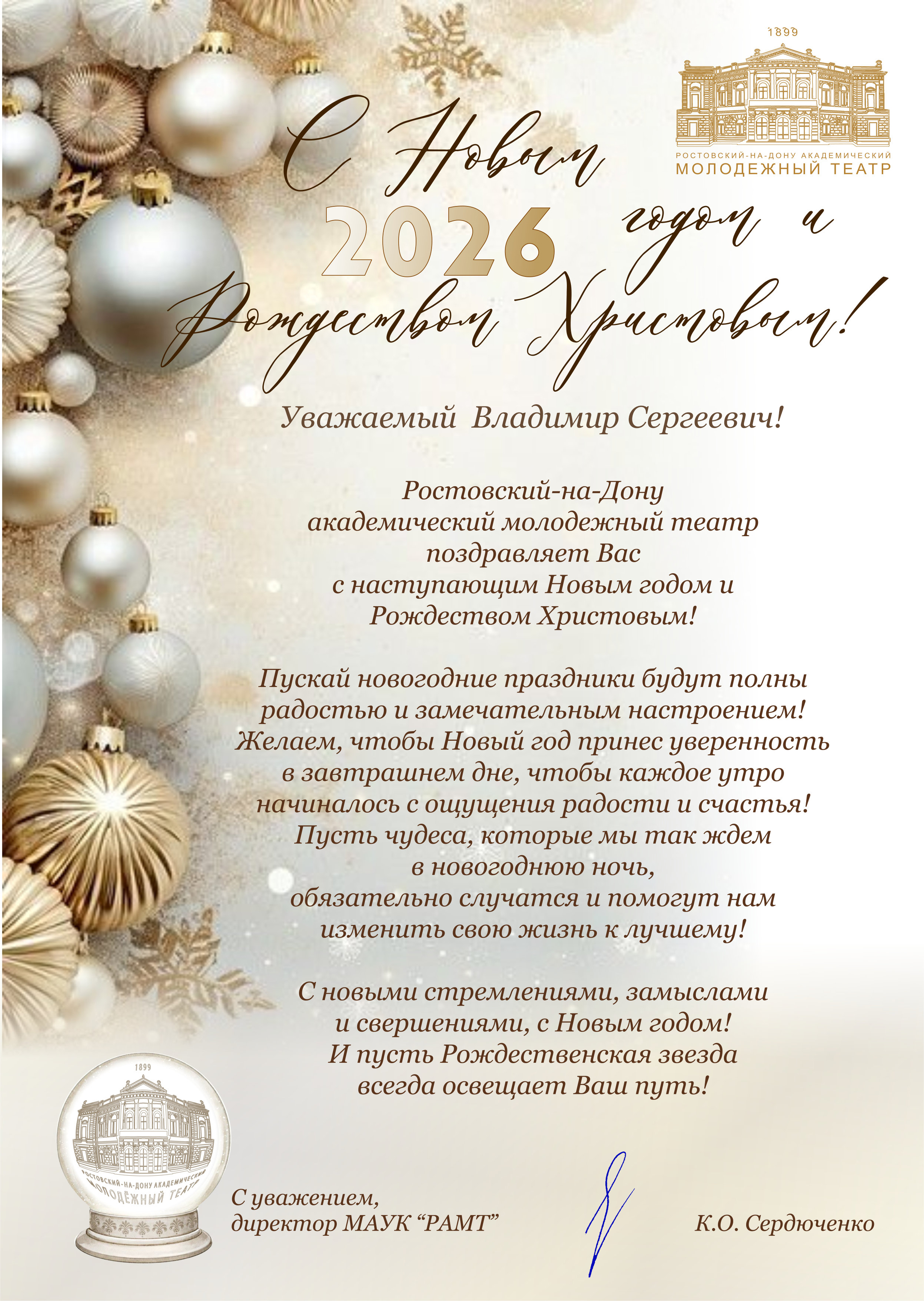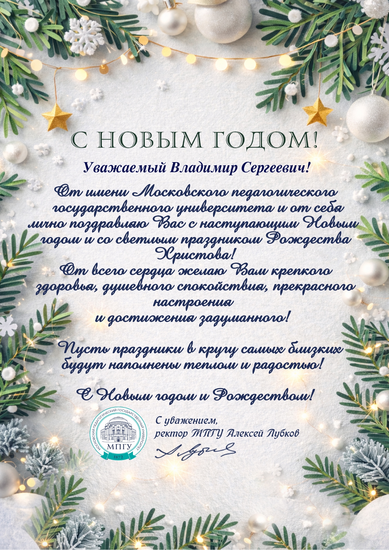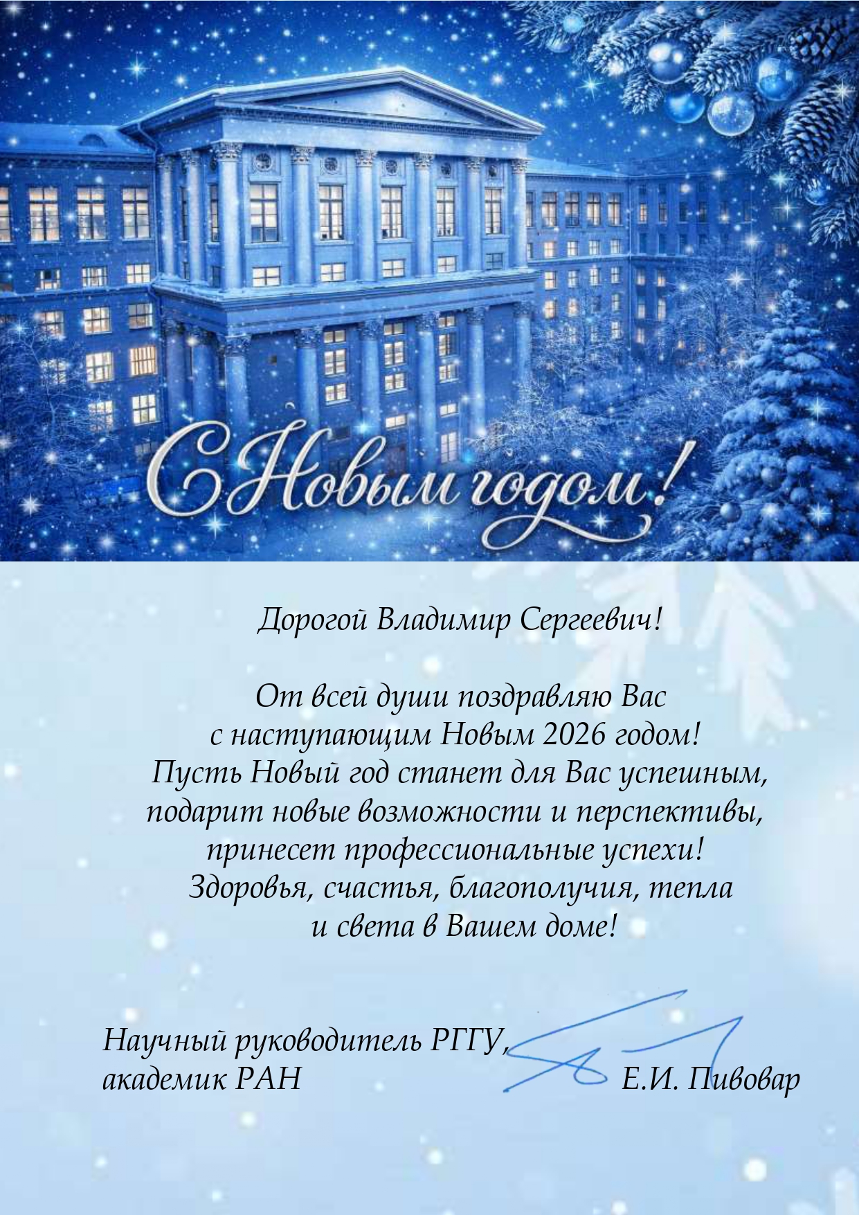 В адрес ректора ВГИКа В.С. Малышева поступают поздравительные открытки с Новым 2026 годом