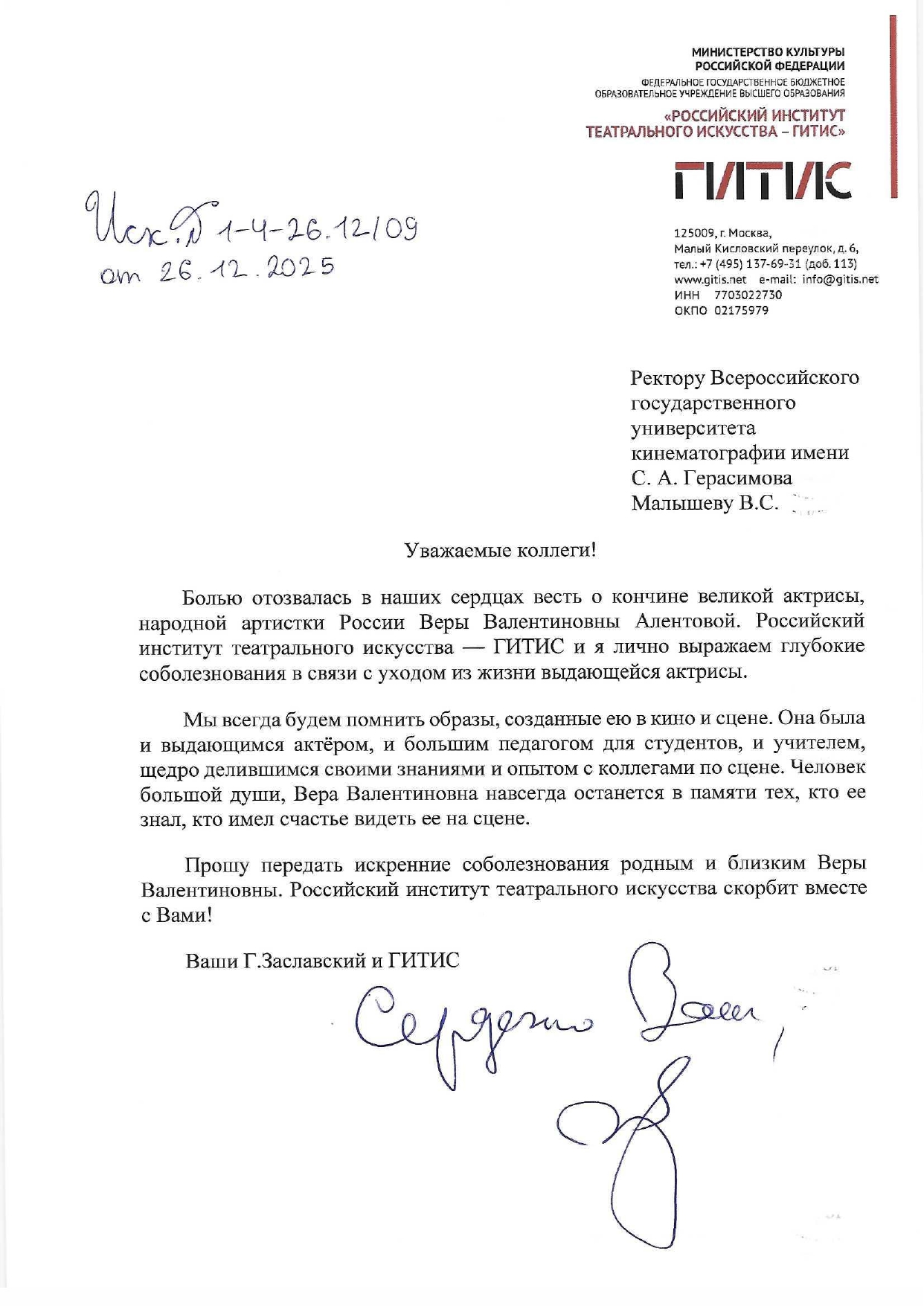 ВСЕРОССИЙСКИЙ ГОСУДАРСТВЕННЫЙ УНИВЕРСИТЕТ КИНЕМАТОГРАФИИ ИМЕНИ С.А. ГЕРАСИМОВА