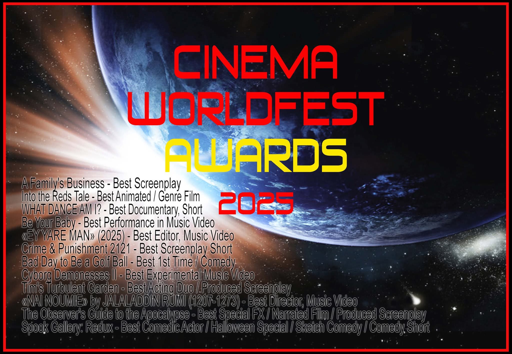 Лос Анджелес, Калифорния, США 29 декабря 2025 «Cinema WorldFest Awards» подвёл итоги. Два проекта ВГИК им. С.А. Герасимова отмечены в номинации «Music video» Лучшими. https://m.imdb.com/event/ev0004473/2025/1/?ref_=ev_tl_yr_1