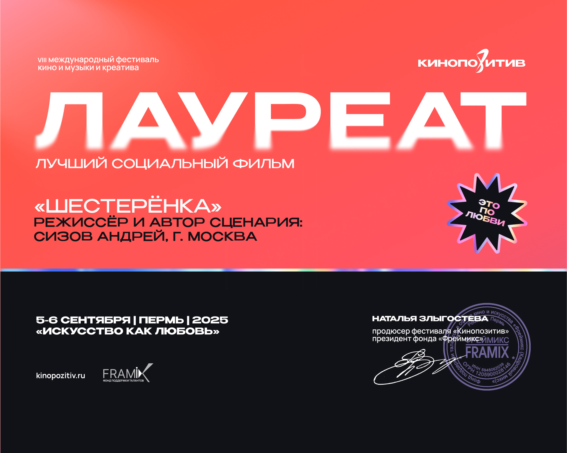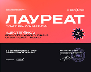 «Шестерёнка» продолжает свое фестивальное продвижение. Фильм представлен в онлайн-кинотеатре Первого канала — Кино1ТВ https://kino.1tv.ru/serials/shesteryonka