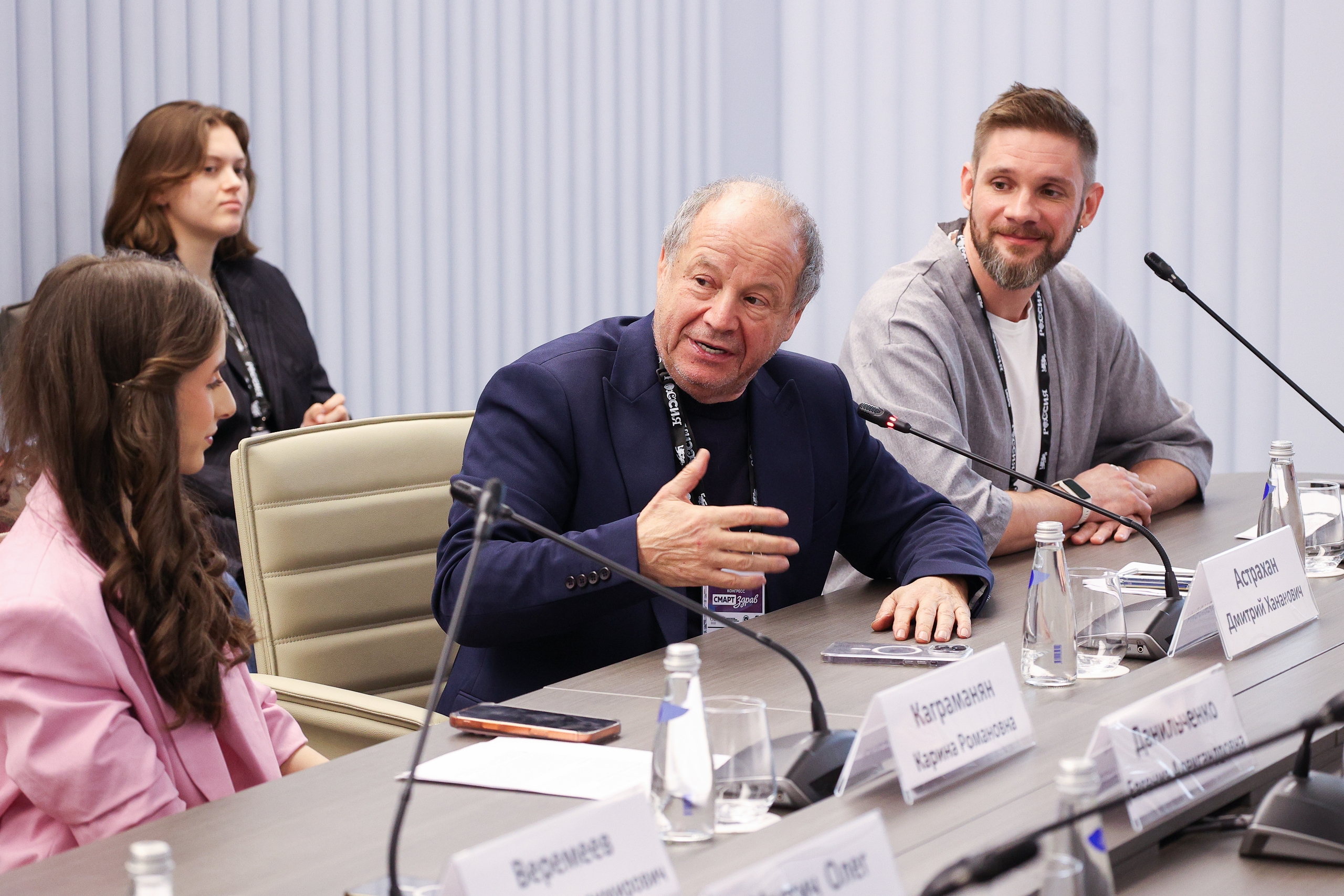 ВГИКовцы также посетили Интерактивную дискуссию «Как язык кино влияет на наше состояние». Дискуссия была посвящена исследованию влияния языка кино, визуальных образов, ритма, сюжетных линий и художественных решений на психоэмоциональное состояние человека. Участники рассматривали кинематограф как инструмент осознанной рефлексии, позволяющий в безопасной форме осмыслять личные переживания и работать с внутренними конфликтами. Одним из спикером был руководитель творческой мастерской режиссуры игрового фильма, профессор, заслуженный деятель искусств Российской Федерации - Дмитрий Хананович Астрахан.