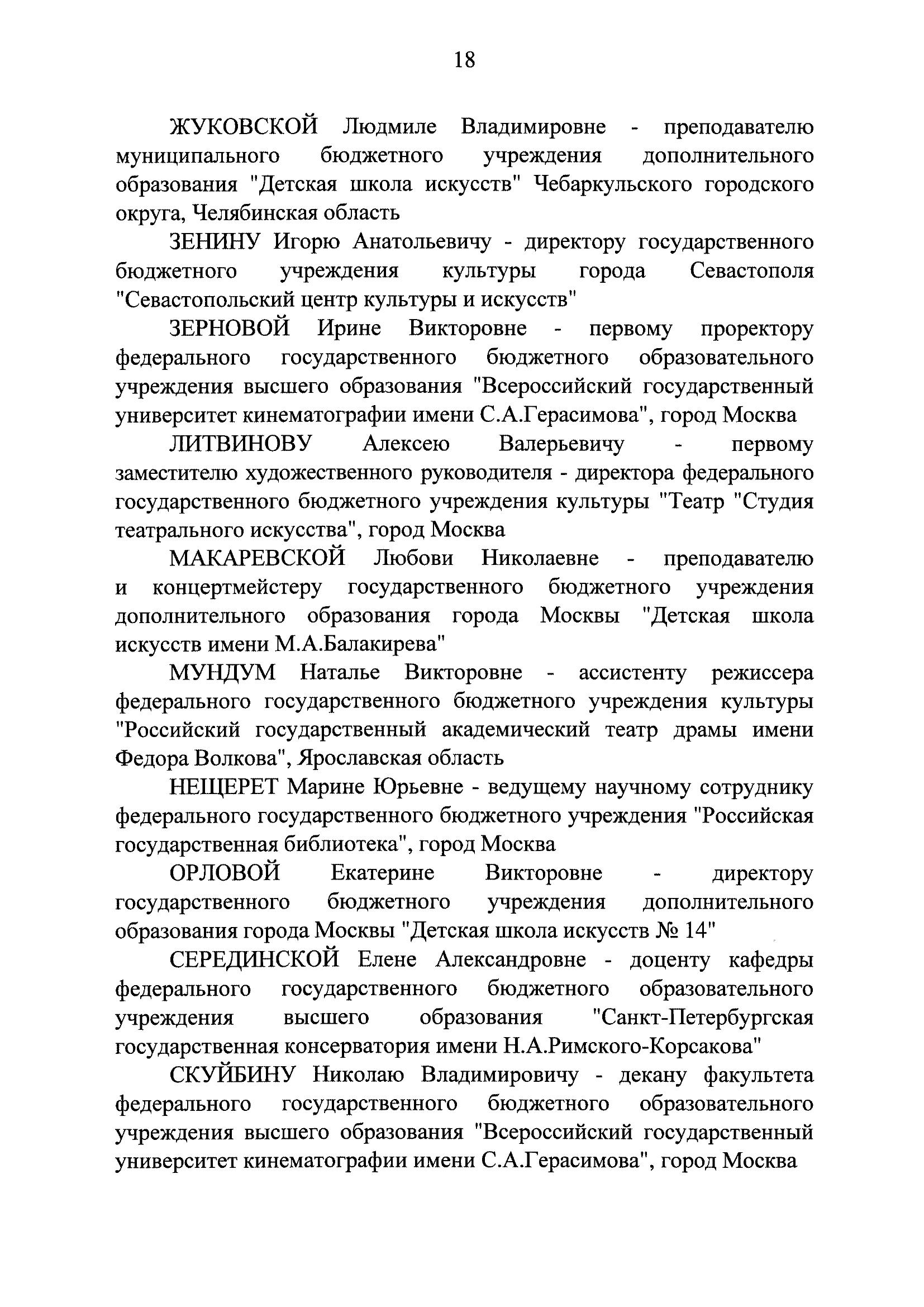 Президент Российской Федерации Владимир Владимирович Путин своим Указом № 70 от 11 февраля 2026 года - присвоил почётное звание «Заслуженный работник культуры Российской Федерации»: