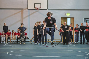 Турнир проходил на базе спортивного зала МГАХИ имени В.И. Сурикова. В программу соревнований вошли следующие этапы: 1. Метание мед. бола; 2. Эстафета со скакалкой и обручем; 3. Эстафета- полоса препятствий; 4. Эстафета- баскетбол + настольный теннис; 5. Вис на турнике для юношей и планка для девушек; 6. Дартс.