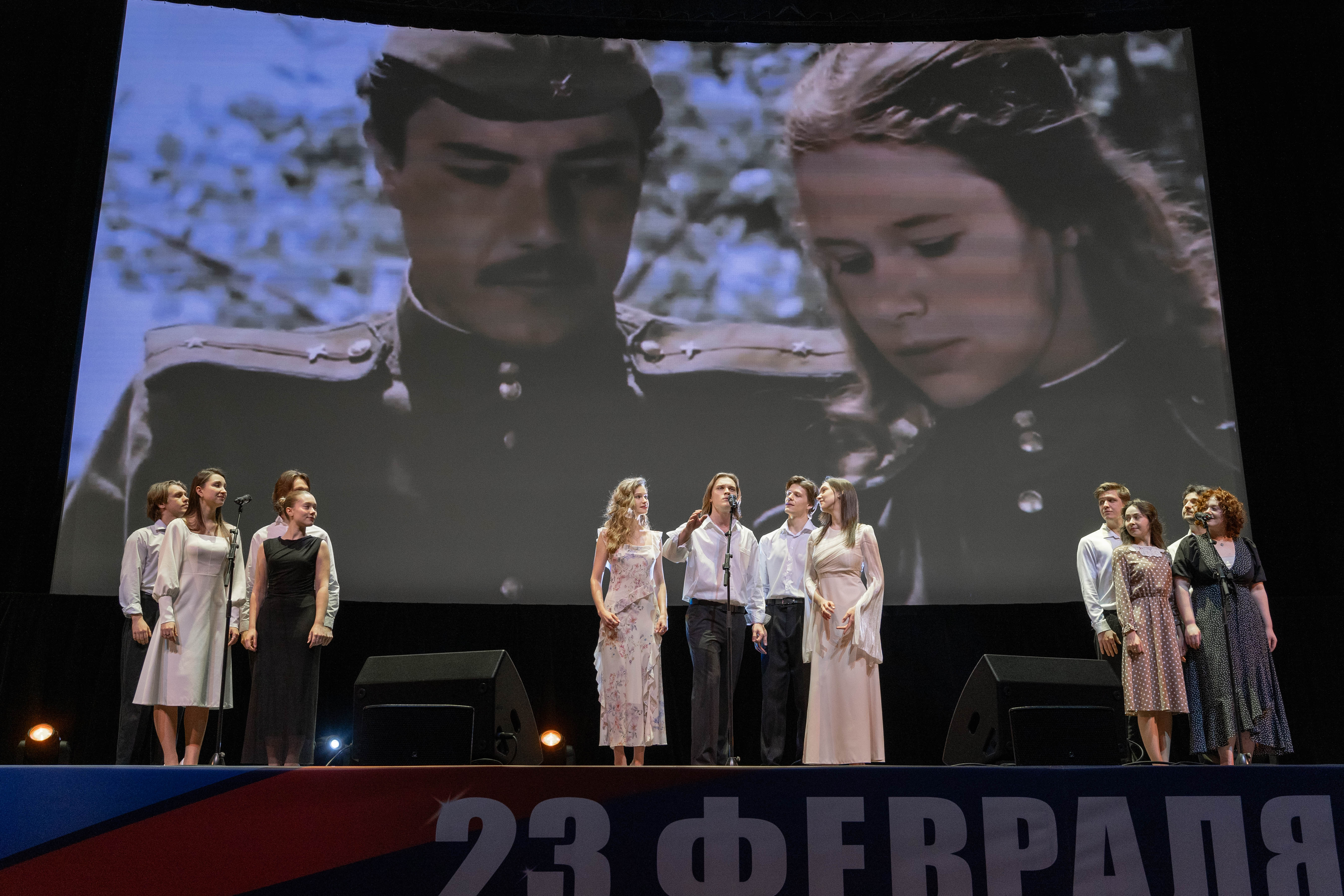 Кульминацией вечера стал праздничный концерт, подготовленный студентами актерского факультета, которые создали в зале атмосферу единения и гордости за защитников Отечества.