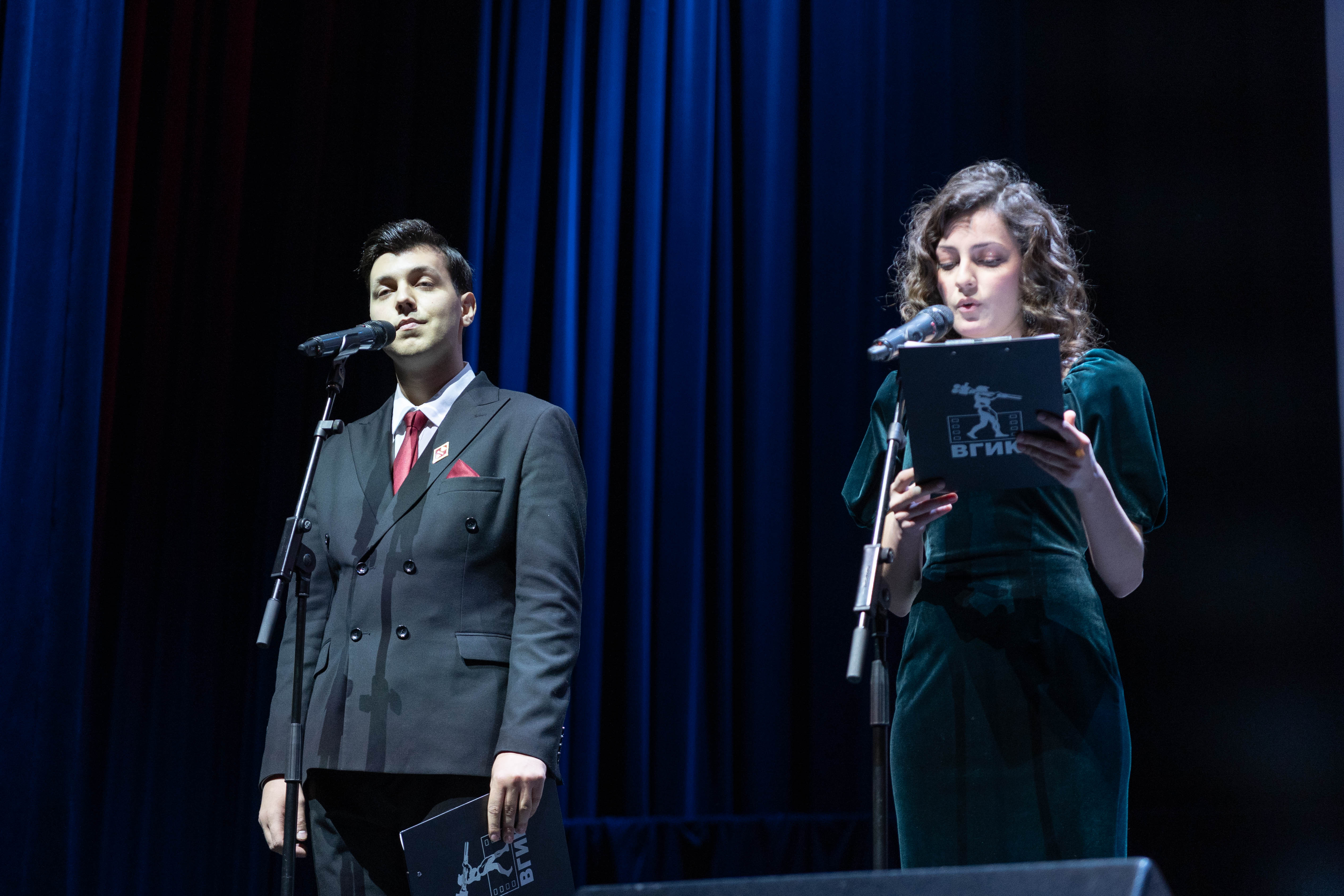 Со сцены к гостям обратился народный артист РСФСР, профессор ВГИКа, руководитель мастерской А. Я. Михайлов. Тёплые слова поздравлений также прозвучали от Героя Российской Федерации, выпускника университета И. Д. Дауди. Член Союза кинематографистов, руководитель продюсерской мастерской ВГИКа, режиссер-документалист Е. Д. Головня рассказала о своих поездках в зону СВО и представила фрагмент своего фильма об этом и концертах прифронтовой творческой бригады.