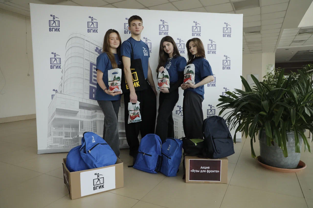 Всероссийский государственный университет кинематографии имени С.А. Герасимова присоединился к Всероссийской акции «Вузы для фронта!». В течение февраля 2026 года силами студентов, преподавателей и сотрудников университета был организован сбор гуманитарной и материально-технической помощи. Для наших бойцов были подготовлены: Каталитические грелки и рюкзаки с канцелярскими товарами; Портативные зарядные устройства (повербанки); Сладкие подарки ко Дню защитника Отечества.