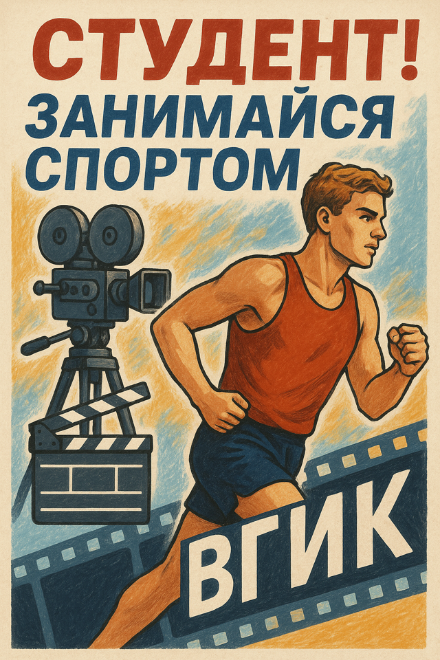 В рамках студенческой Спартакиады на Кубок Ректора ВГИК, к 90-летию со Дня рождения Говорухина Станислава Сергеевича (30-летию окончания ВГИК) на кафедре спецфизподготовки прошел творческий конкурс плаката под девизом: "ВГИК - здесь спорт встречается с творчеством".