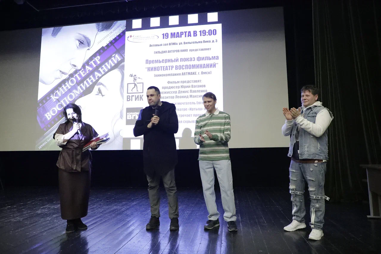 19 марта 2026г. в Актовом зале ВГИКа им. С.А. Герасимова в рамках цикла «Вторая профессия» Гильдии актеров Союза кинематографистов России состоялся премьерный показ художественного фильма «Кинотеатр воспоминаний». Мероприятие прошло при поддержке Киноклуба ВГИК.