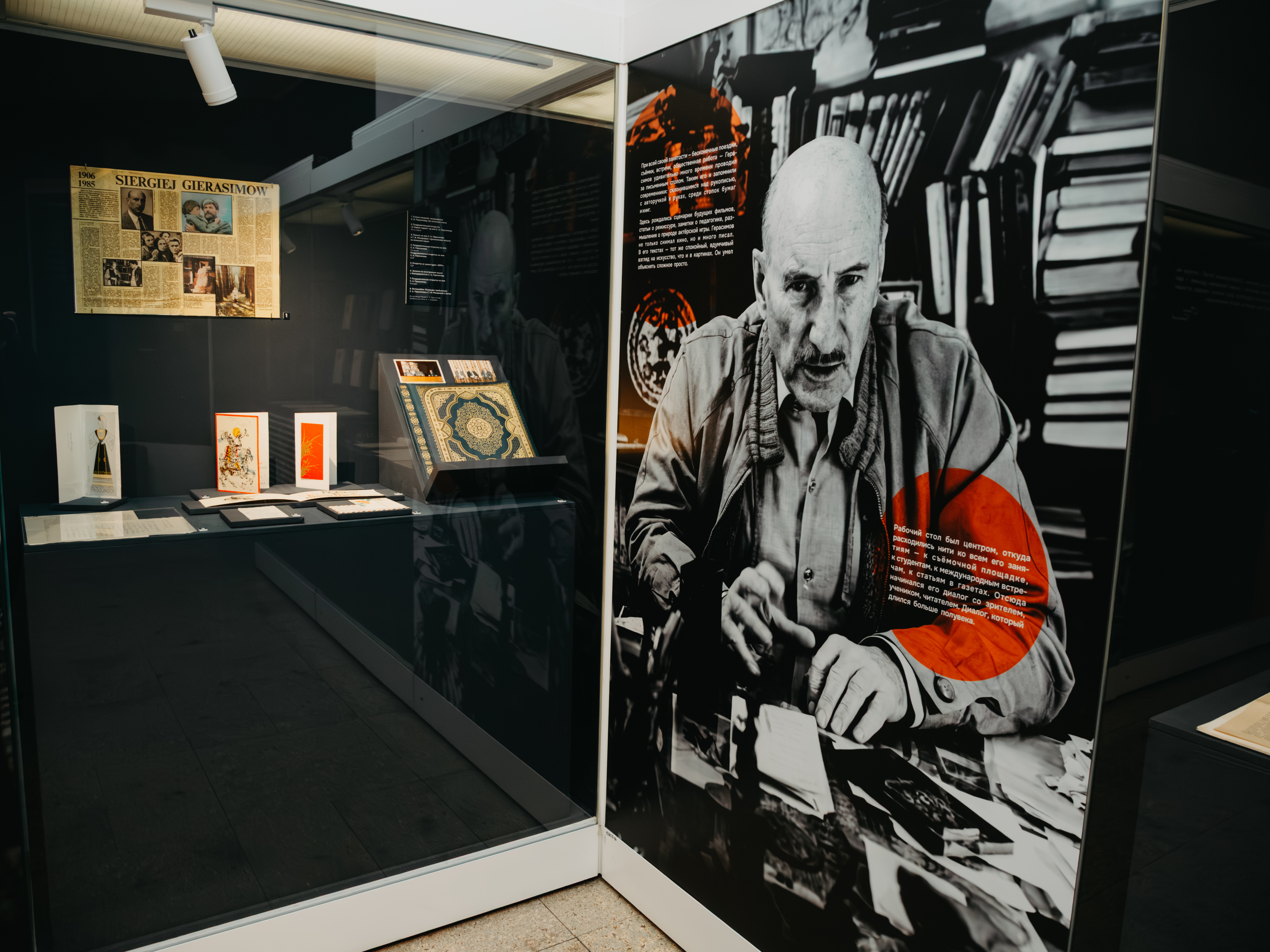 Сотрудники Отдела отечественного кино НИИКК ВГИКа под руководством начальника отдела О.А. Чижевской внесли значительный вклад в формирование уникальной экспозиции, охватывающей жизненный и творческий путь легендарного вгиковского Мастера. Выставка включает в себя несколько разделов и рассказывает об основных профессиональных вехах легендарного кинематографиста, его личных увлечениях и путешествиях. На мультимедийной выставке представлены уникальные экспонаты, редкие фотографии, малоизвестные записи выступлений режиссёра.
