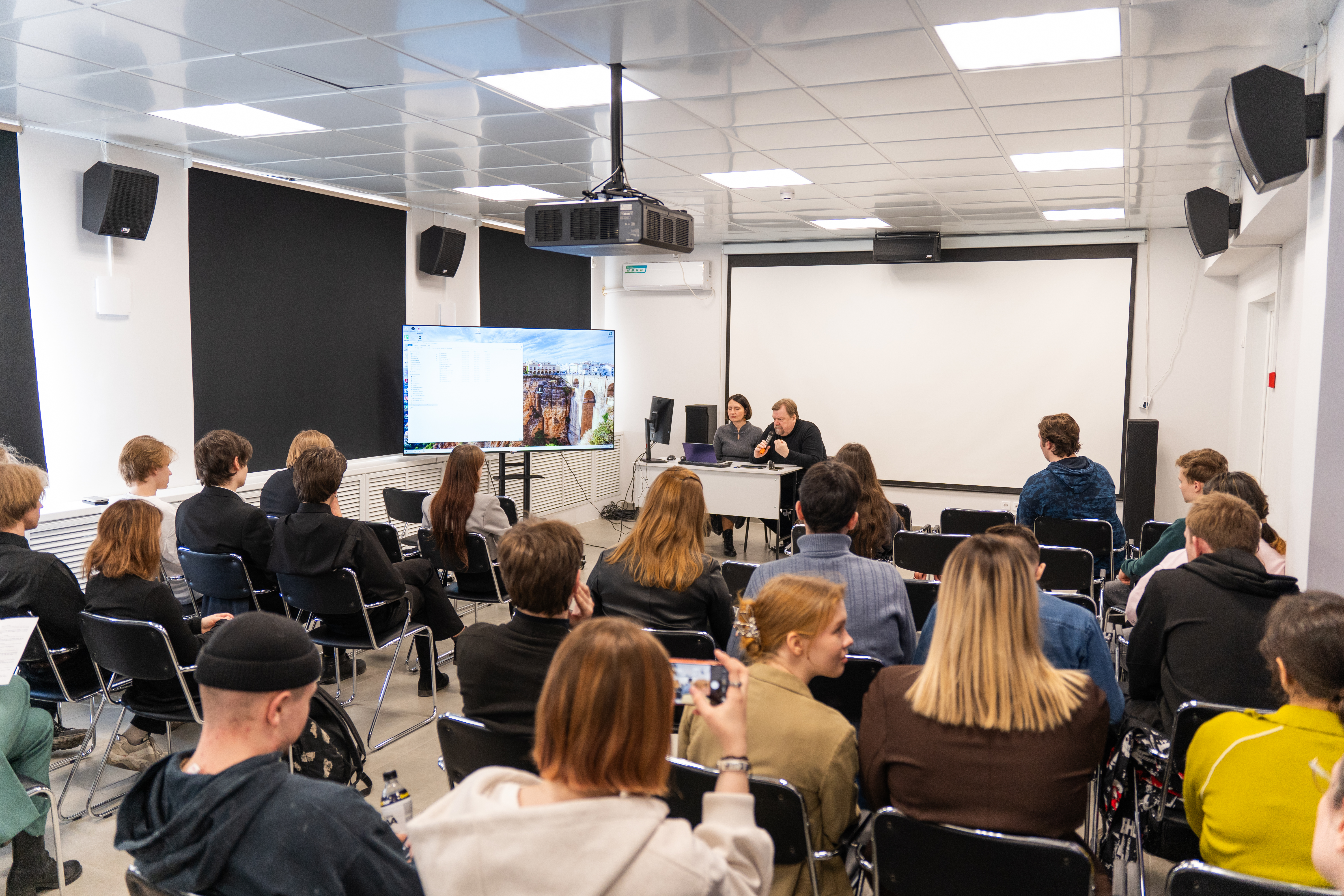 Тогда же, 1 апреля декан сценарно-киноведческого факультета ВГИК, кандидат искусствоведения, профессор кафедры киноведения ВГИК, руководитель мастерских В.В. Марусенков провел мастер-класс «Кинодраматургия как базисная основа экранного произведения».