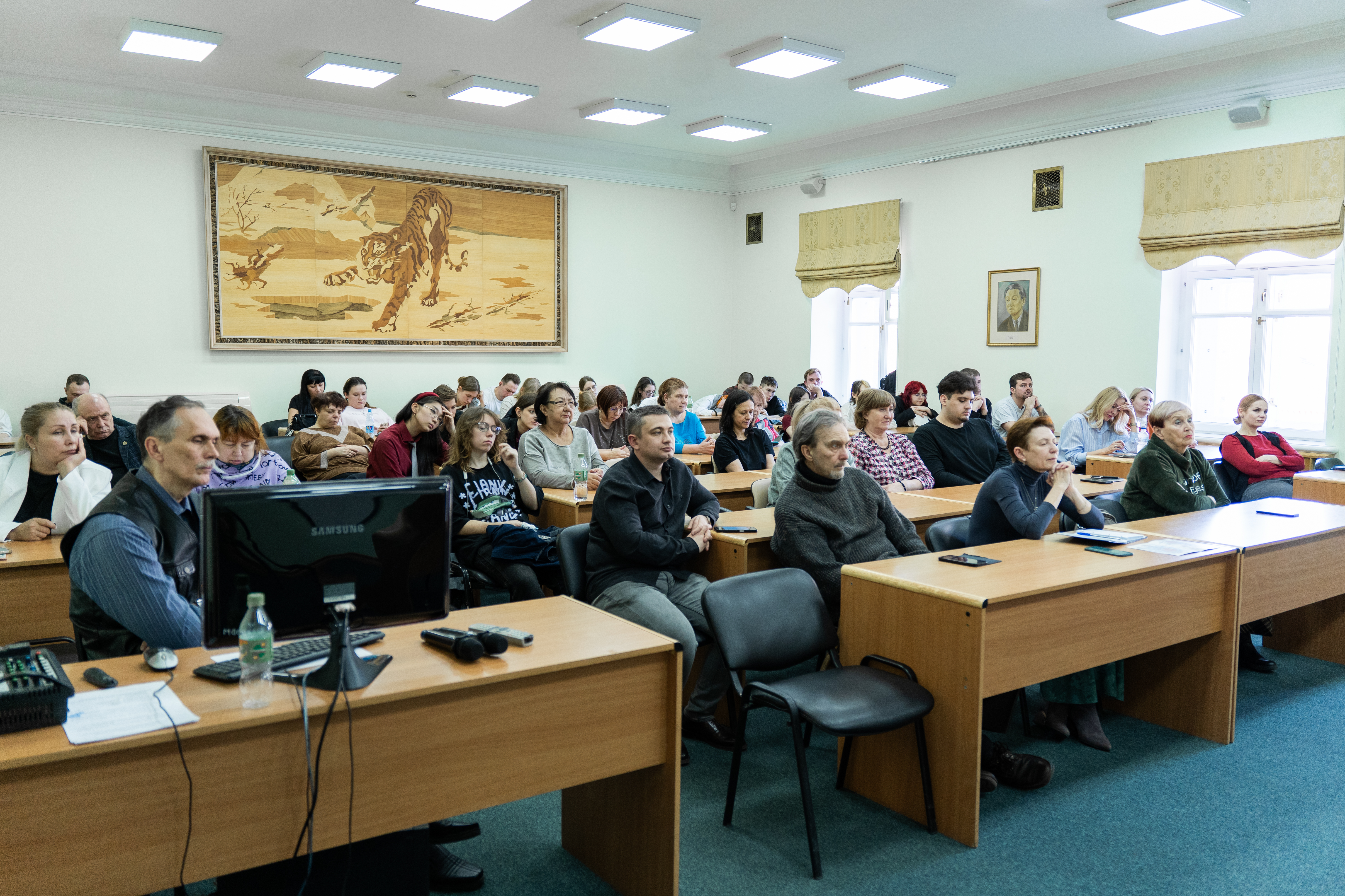 В завершение первого дня программы на площадке Дальневосточной государственной научной библиотеки состоялся мастер-класс декана сценарно-киноведческого факультета ВГИК, кандидата искусствоведения, профессора кафедры киноведения ВГИК, руководителя мастерских В.В. Марусенкова «Экранные образы русской классической литературы как доминанта русского мира в кинематографе».