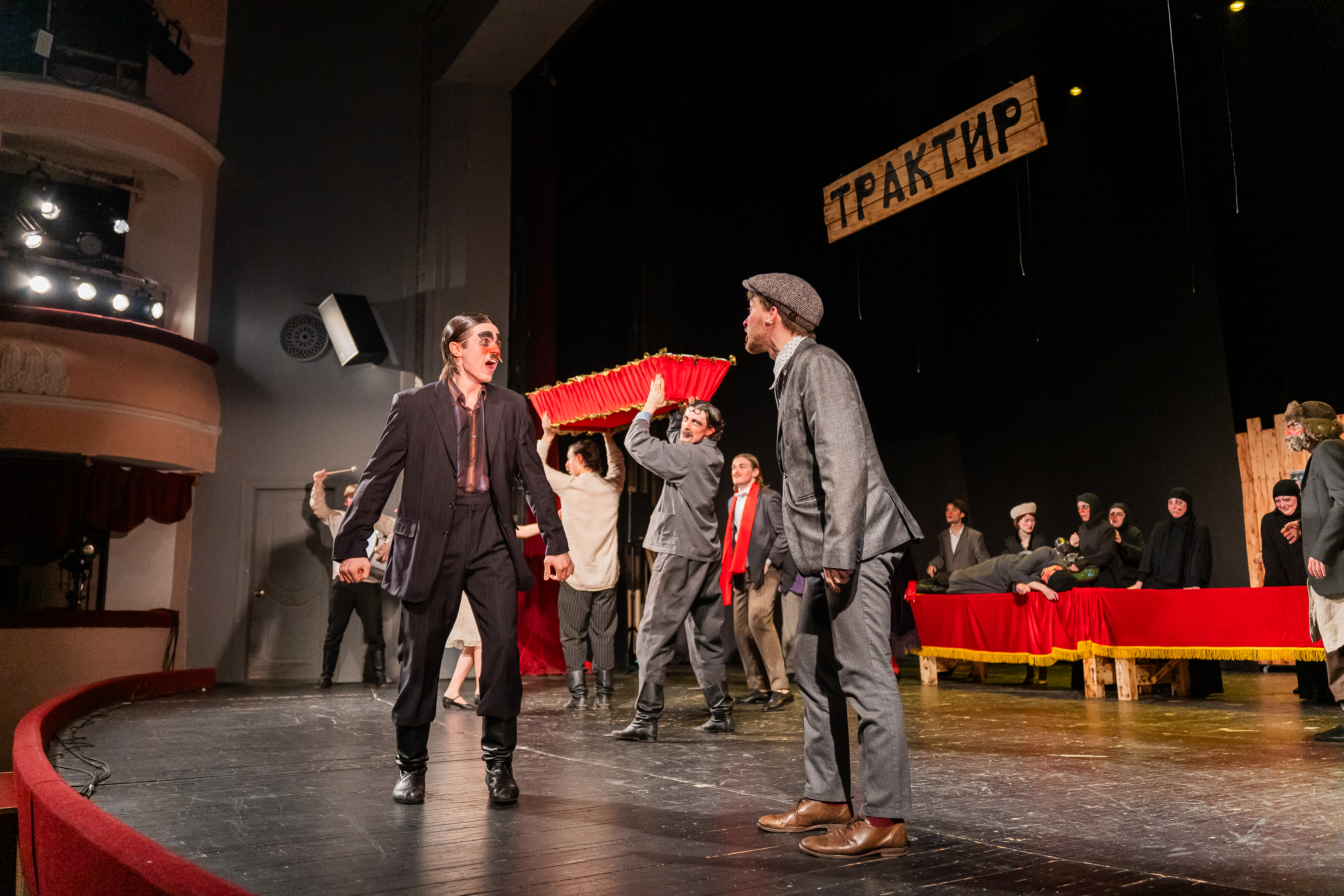 Зрителям на суд была вынесена история Аграфены Саввишны - вдовы трактирщика - и её отчаянных женихов, стремящихся стать новыми хозяевами питейного заведения. Эта история, начавшаяся с похорон и закончившаяся женитьбой, – сатиричная оперетта Исаака Дунаевского в энергичном и задорном исполнении актёров ВГИКа, уже успевшая стать их визитной карточкой, – на этот раз поразила жителей Дальнего Востока.