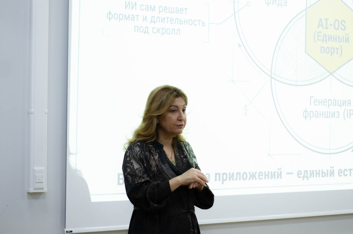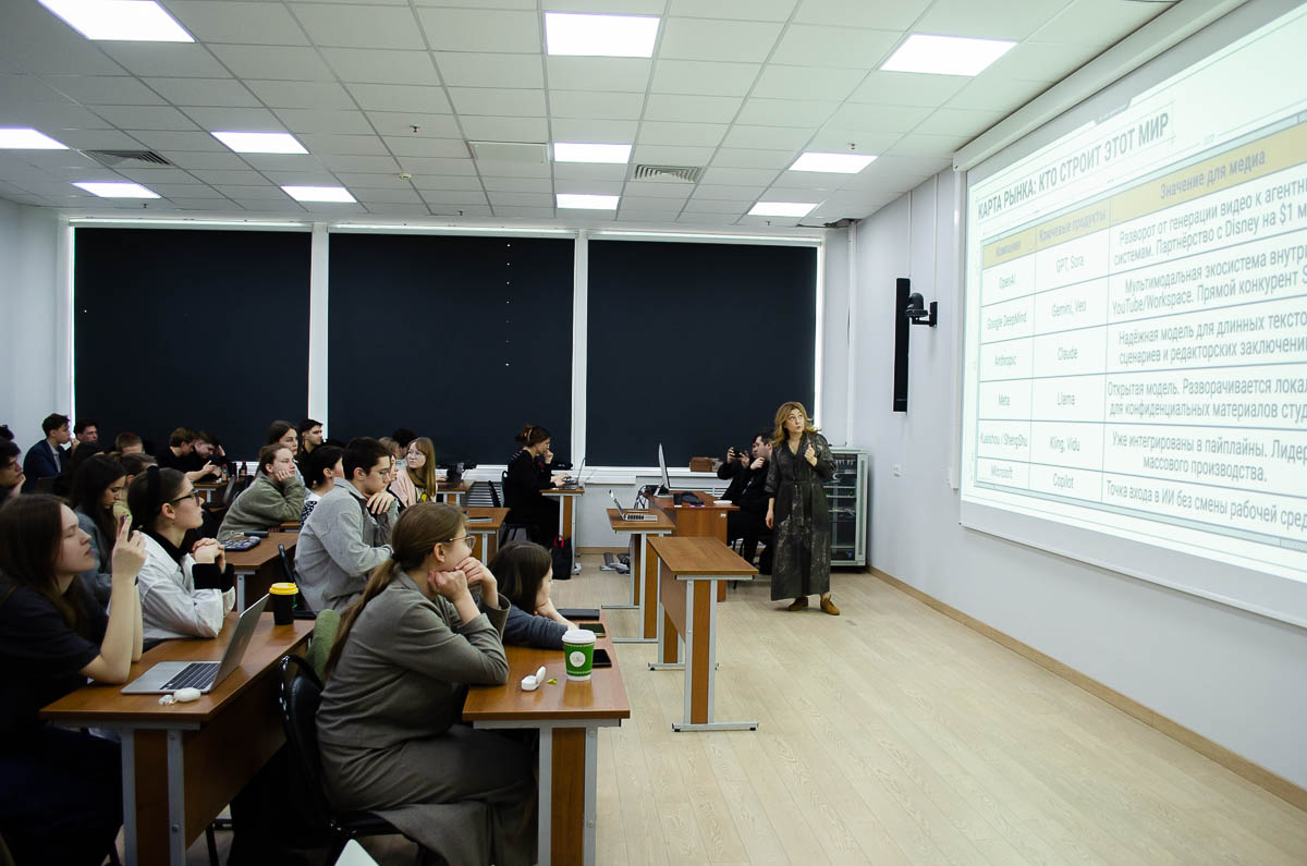 В рамках мастер-класса Нелли Рачиковна на примере общемировых тенденций и собственных проектов рассказала о влиянии искусственного интеллекта на аудиовизуальное производство, на повышение эффективности производственного этапа и оптимизацию бюджетов, трансформацию творческих профессий, каким будет кинопроизводство завтра и что должен уметь профессионал нашей индустрии сейчас, чтобы громко звучать на рынке завтра. Мастер также коснулась личного профессионального трека в продюсировании, особое место в котором занимает обучение во ВГИКе в мастерской А. З. Акопова.
