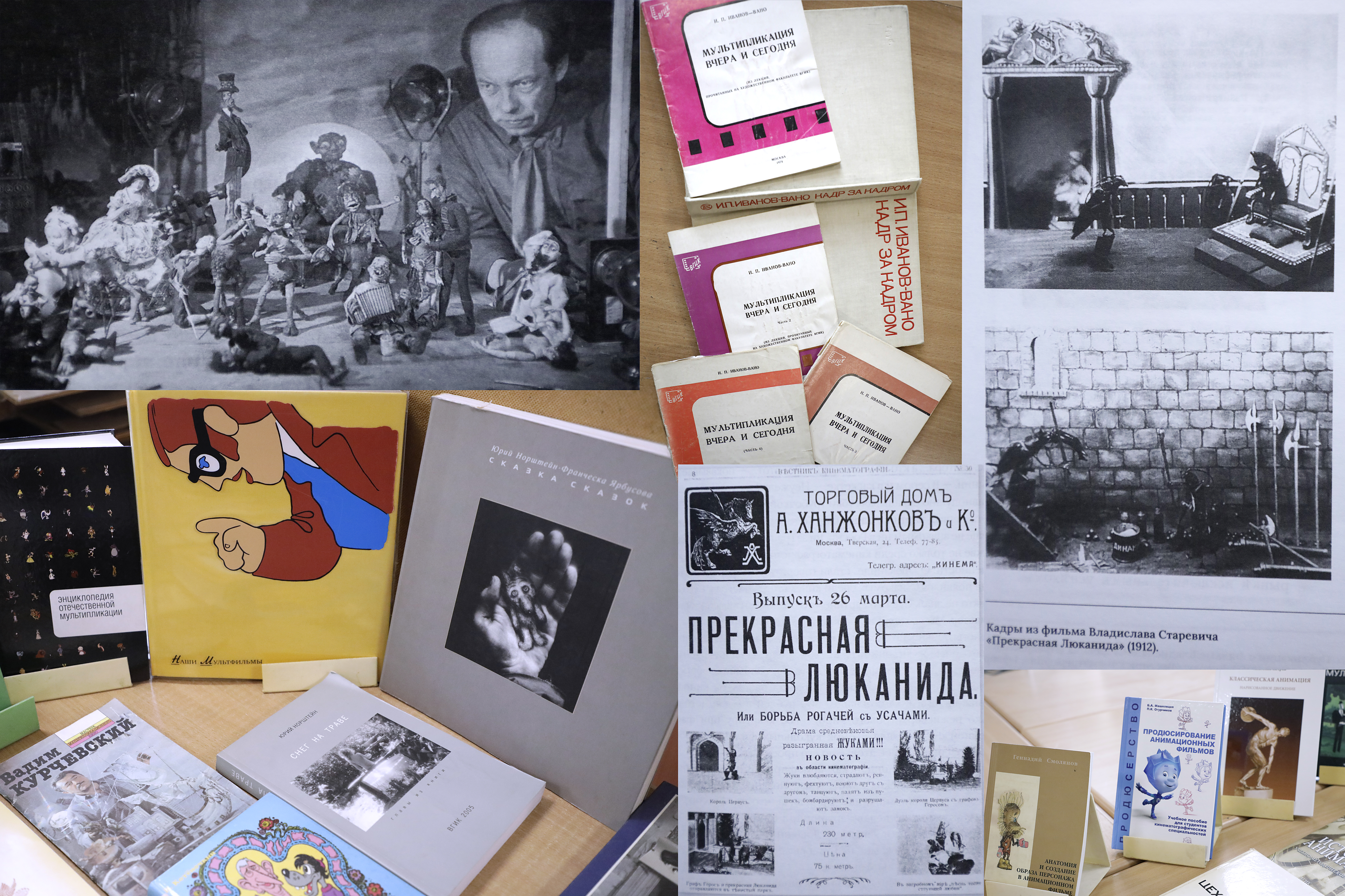 Книжная выставка в читальном зале знакомит с учебными пособиями педагогов ВГИК, материалами научных конференций разных лет: «Анимация как феномен культуры», монографиями, альбомами о творчестве режиссеров и художников-мультипликаторов отечественного анимационного кино (И.П. Иванова-Вано, Ф.С. Хитрука, Л.А. Шварцмана, Ю.Б. Норштейна, С.А. Алимова, В.М. Котеночкина, В.В. Курчевского и др.).