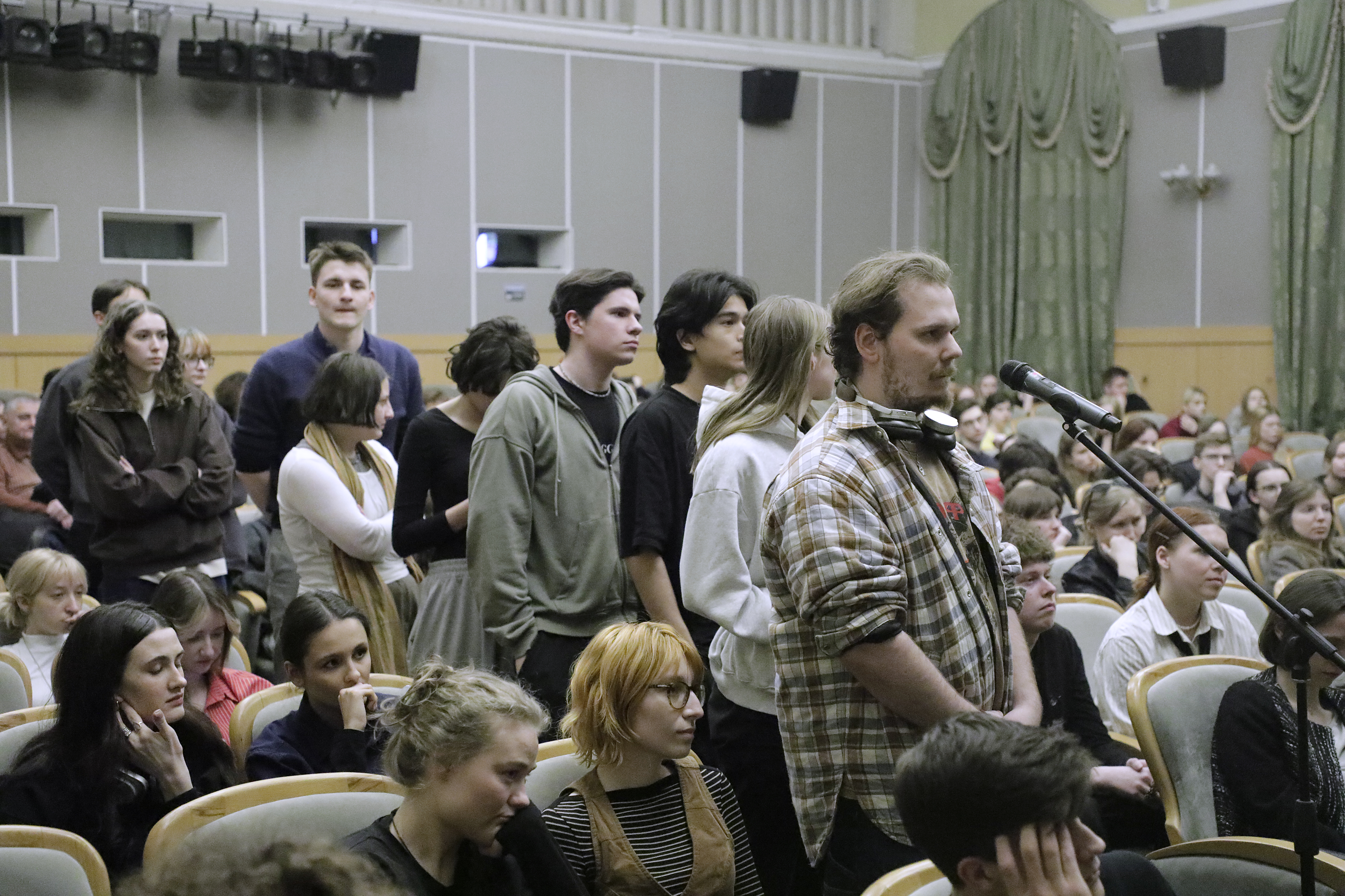 После просмотра состоялся мастер-класс в формате вопрос-ответ. Чтобы задать вопросы, которых было очень много, студенты выстраивались в очередь. В зале были студенты практически всех факультетов ВГИКа, поэтому и вопросы были разными, Сергей и Иван с удовольствием отвечали на них. Состоялся интересный, профессиональный и душевный разговор. Студенты долго не отпускали режиссера и продюсера, делились впечатлениями, задавали вопросы и делали совместные фотографии.