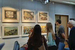 Выставка «Шукшин в кадре», на которой представлены киноэскизы студентов мастерской художника-постановщика игрового фильма под руководством С. Зуева (кафедра мастерства художника фильма Художественного факультета) открылась в Чеховском Культурном центре московской библиотеки №8 имени А.П. Чехова г. Москвы.