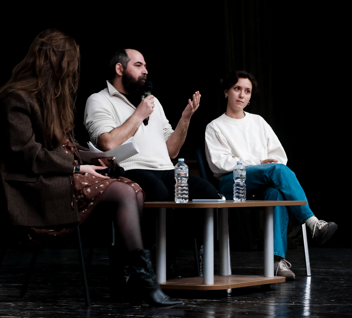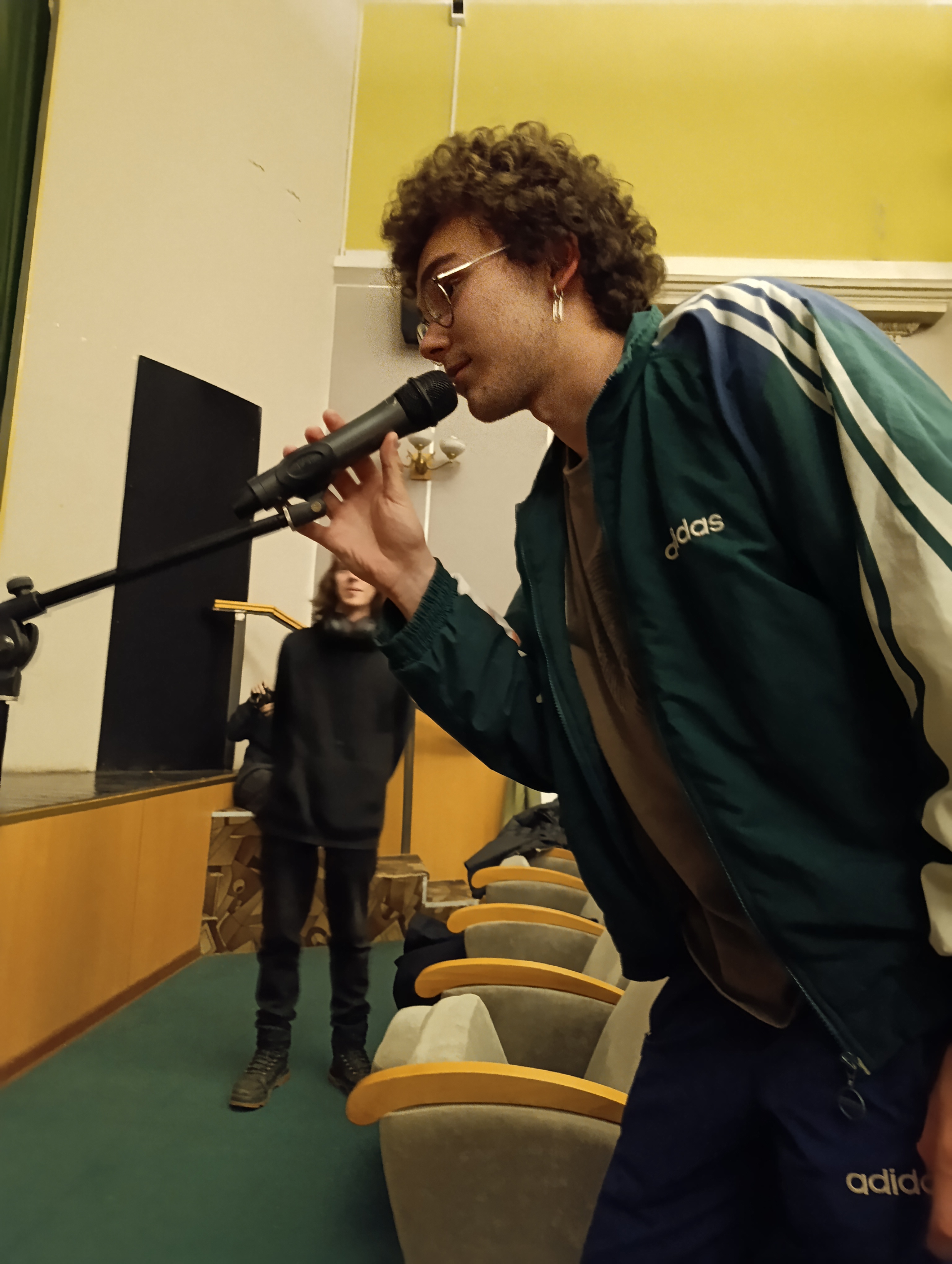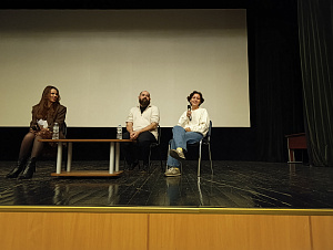 После просмотра состоялся разговор о фильме, в котором приняли участие режиссёр Рауль Гейдаров и оператор Саша Негуч. Модератором мероприятия была студентка 2-го курса продюсерского факультета заочного отделения мастерской Ю.М. Обухова Анастасия Оборник, которая прекрасно справилась с ролью ведущей.