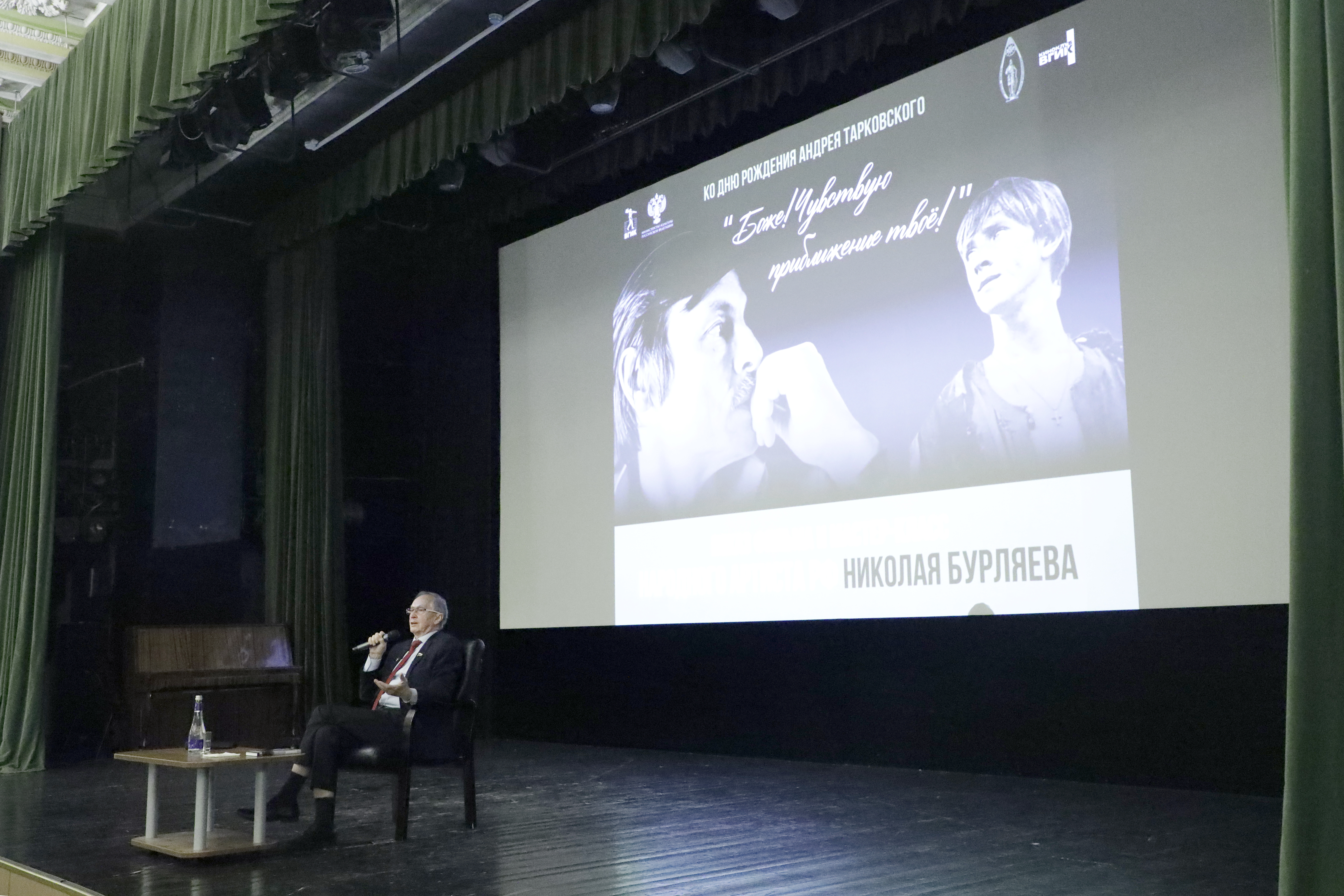 Проректор по учебно-методической и воспитательной работе И.В. Коротков открыл мероприятие, сказал о значимости данной встречи и возможности для студентов пообщаться с человеком, который лично знал Андрея Тарковского и снялся в двух его фильмах «Иваново детство» и «Андрей Рублёв», которые получили всемирное признание. Проректор представил Н.П. Бурляева и предоставил ему слово. Николай Петрович рассказал о работе с Мастером, их взаимоотношениях, о том какое влияние на его судьбу и творчество оказал Тарковский.