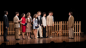 Одна из первых больших пьес Вампилова, несмотря на светлую печаль и тревожное предчувствие необходимости взрослеть, наполнена ироничным юмором драматурга, а неоднозначный финал оставляет зрителю пространство для размышлений. Молодые актёры ВГИКа с трепетной нежностью подошли к постановке, изобразив на сцене не только поколение шестидесятых, но и свой автопортрет, понятный и в чём-то близкий каждому зрителю.Постановка никого не оставила равнодушным, а искренняя игра молодых талантливых актёров была встречена зрительным залом с большим воодушевлением и громкими аплодисментами.