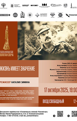 17 октября в 19:00 в киноклубе «Русский путь» состоится показ фильма-номинанта на Российскую национальную премию в области неигрового кино «Золотая Свеча» 2025, «ЖИЗНЬ ИМЕЕТ ЗНАЧЕНИЕ» (реж. Наталия...