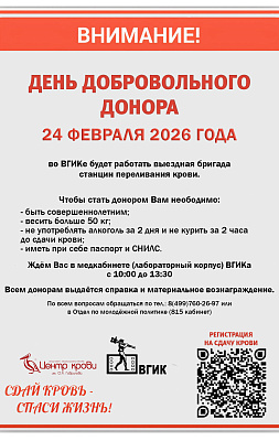 17 февраля 2026 г. в 15:30 в аудитории № 910 в рамках ВГИК Киноклуб к 125-летию народного артиста СССР Михаила Ильича Ромма, состоится встреча с заслуженным деятелем искусств РФ, выпускником ...